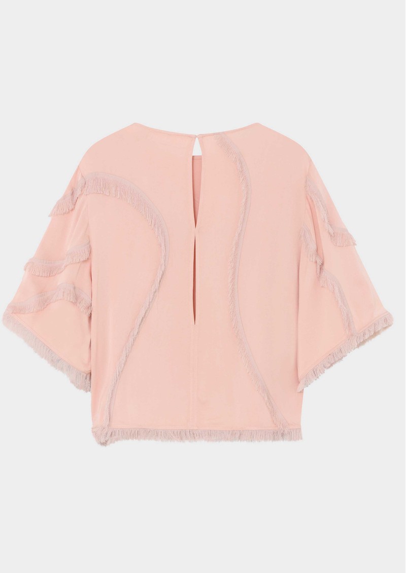 The Day Birger Et Mikkelsen Tatiana Matte Crepe Viscose Top in Rose Smoke Hue combines contemporary style with subtle texture, featuring a relaxed boxy fit, dropped shoulders, and eye-catching fringe detailing for a modern, chic finish.