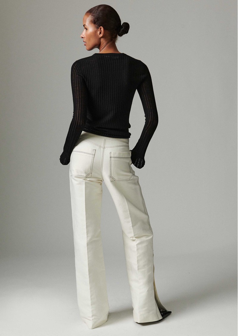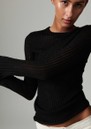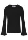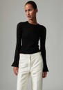 The Day Birger Et Mikkelsen Vibe Top in Black combines sleek tailoring with modern flair, featuring a slim fit, ribbed wool texture, and dramatic trumpet sleeves for a chic, contemporary silhouette.