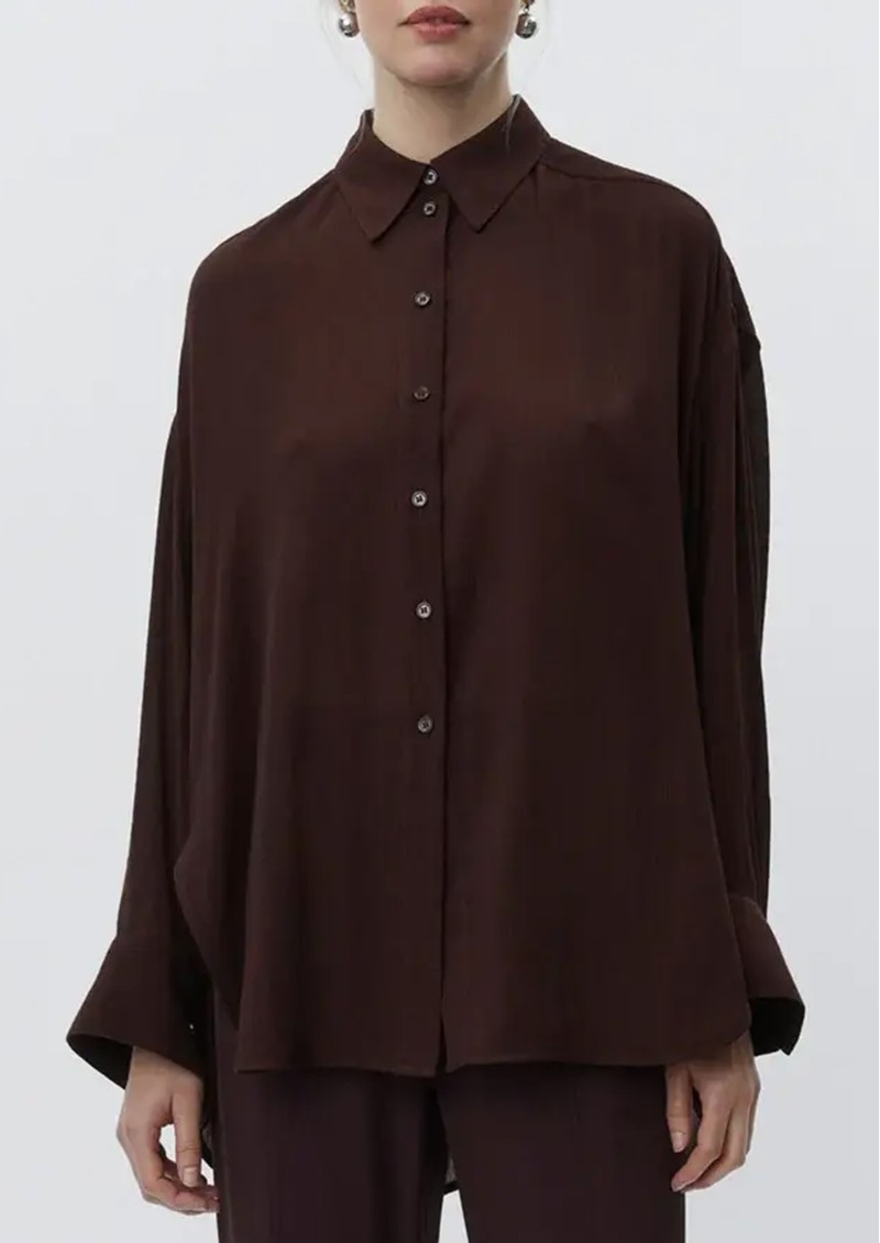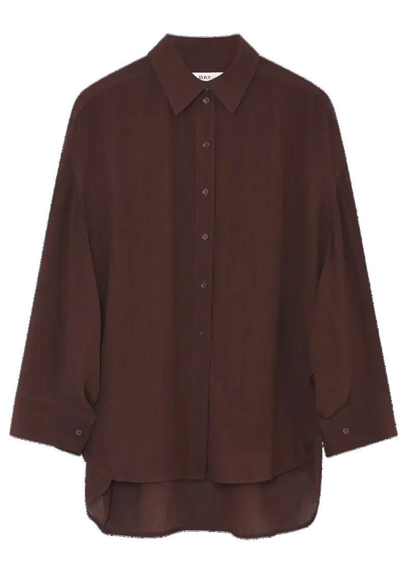 The Day Birger et Mikkelsen Weiss Shirt is an essential piece to add to your wardrobe. This versatile crinkle textured brown shirt will work hard and team well with anything from jeans, to a blazer. This chic shirt features a button down closure, classic collar, and high/low hemline. Key features of this Day Birger et Mikkelsen shirt are: