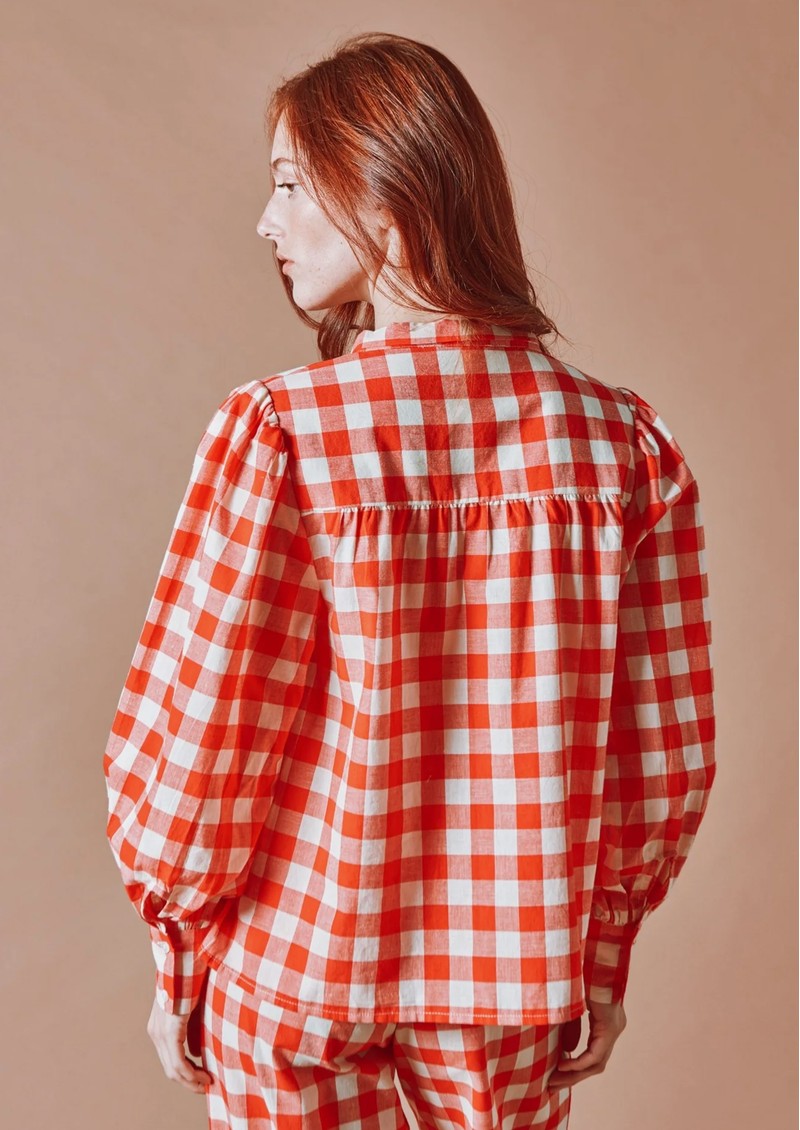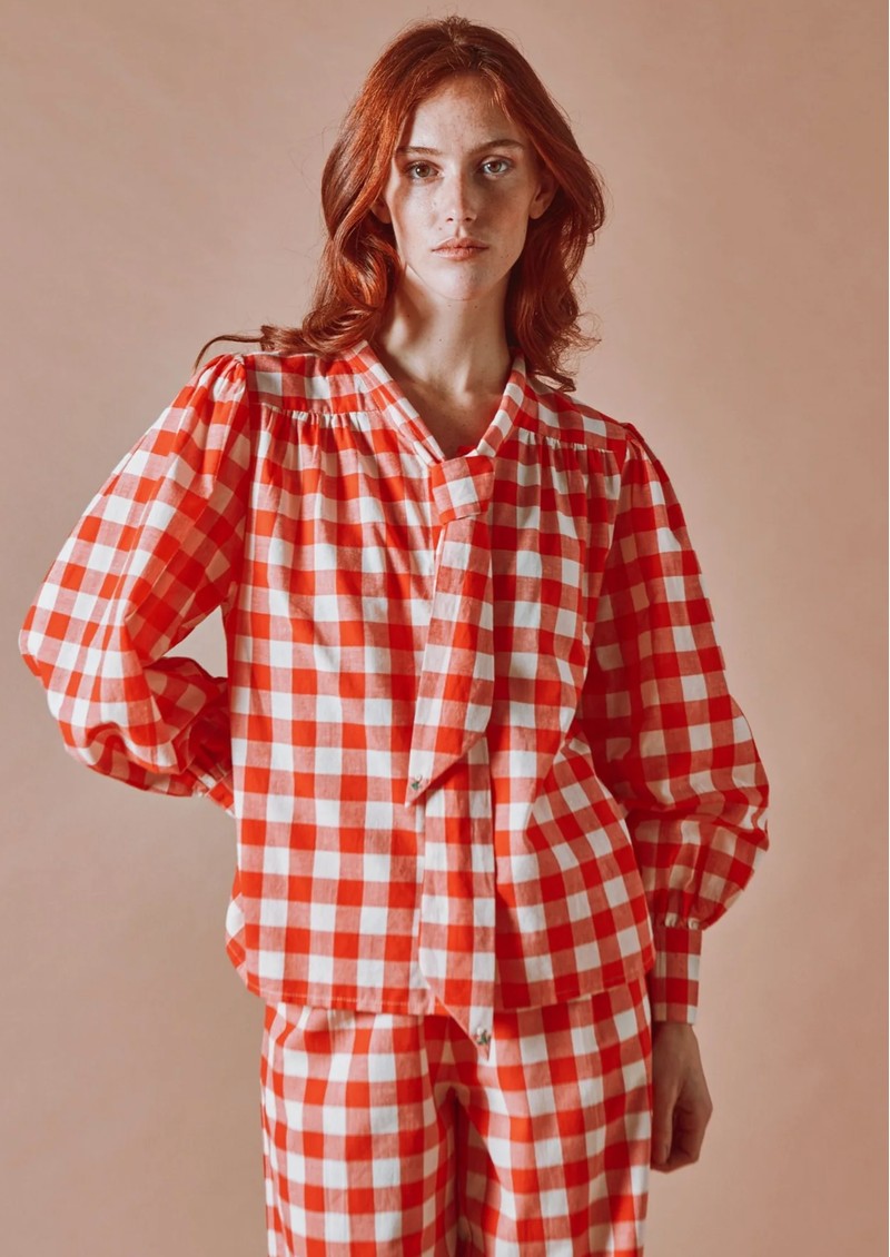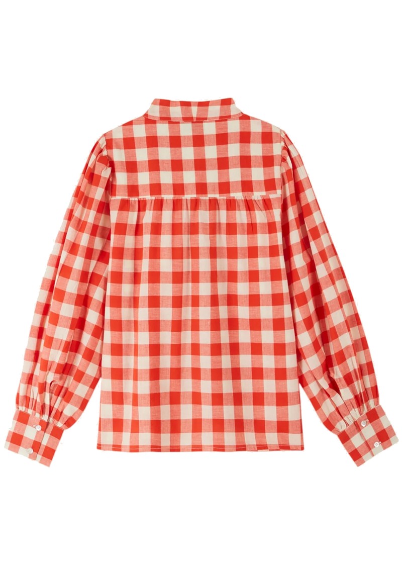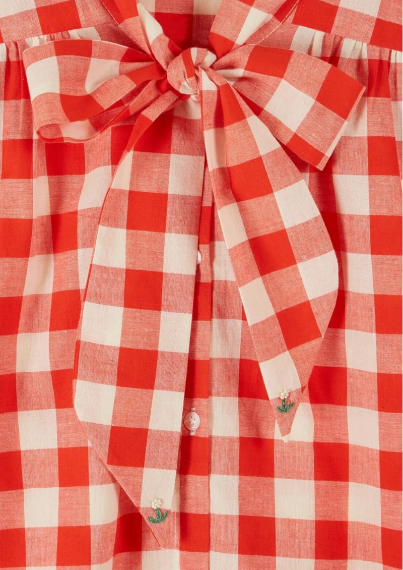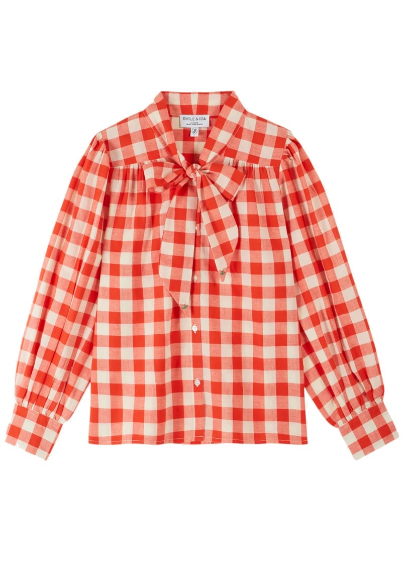 EMILE ET IDA Lavaliere Organic Cotton Blouse - Vichy Rouge