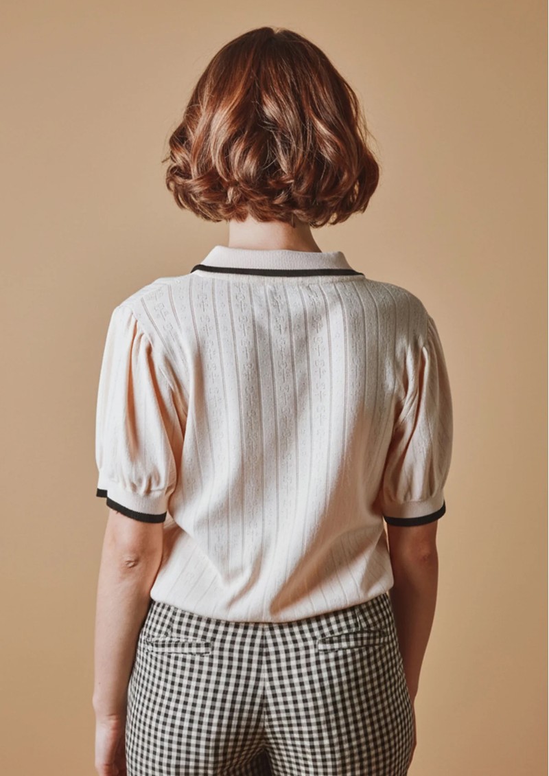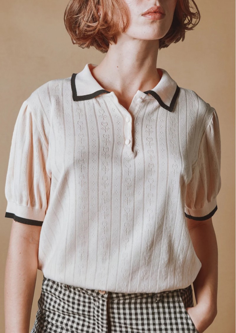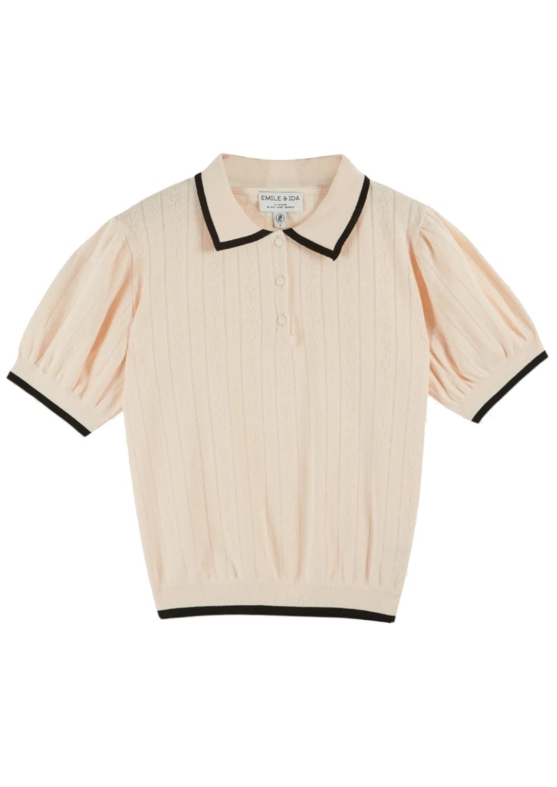 EMILE ET IDA Polo Pointelle Top - Creme
