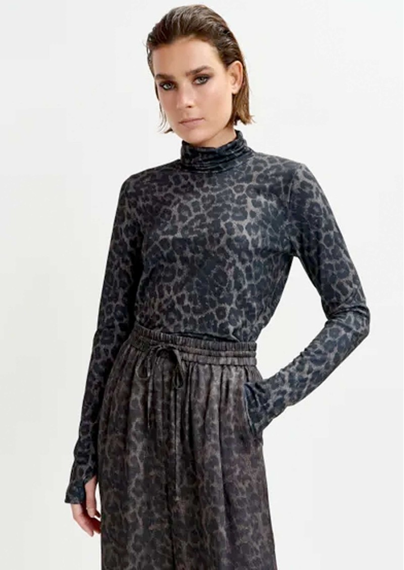 Team your Essentiel Antwerp Trousers with an Essentiel Antwerp polo neck, layering the matching Essentiel Antwerp leopard print shirt open, and finish the look with Veja trainers for a relaxed, coordinated outfit.