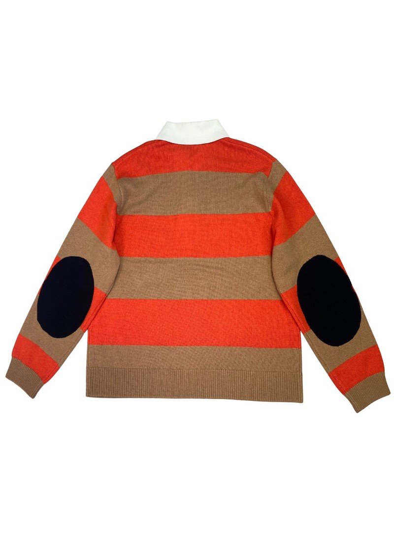 The Essentiel Antwerp Jezebel Jumper in vibrant nectarine brings a fresh pop of color to a timeless design. With sporty stripes, a smart shirt collar, and subtle elbow patches, it’s a cosy yet stylish choice for everyday wear.