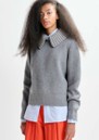 The Essentiel Antwerp Jimmer Jumper features cosy ribbed detailing throughout and a statement oversized Peter Pan collar, with a regular fit in a versatile grey melange hue that pairs effortlessly with anything.