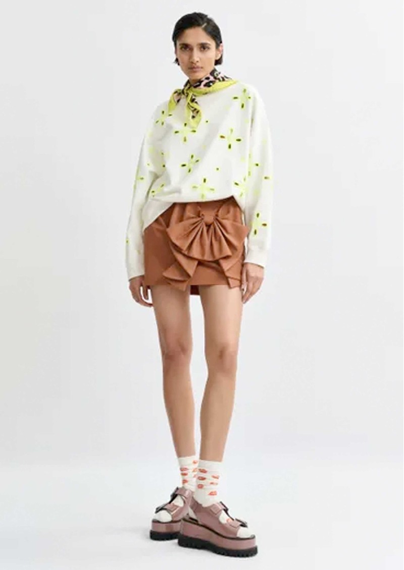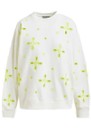 Add a fresh, sporty twist with the Essentiel Antwerp Jix Sweatshirt - an off-white cotton sweatshirt featuring neon yellow floral embroidery, subtle cut-out detailing, a crew neckline, and ribbed edges for a modern, casual look.