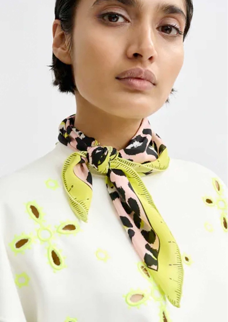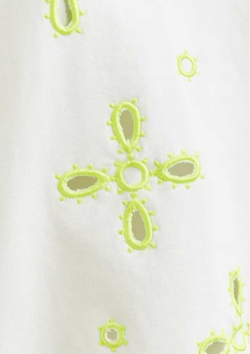 - Fluo yellow floral embroidery with cut-out details