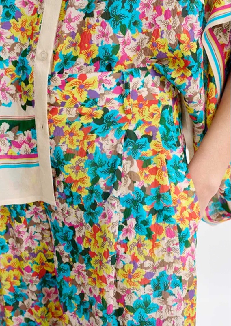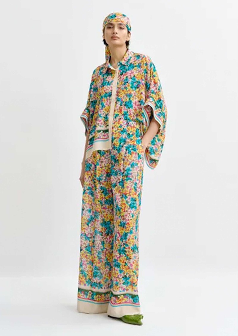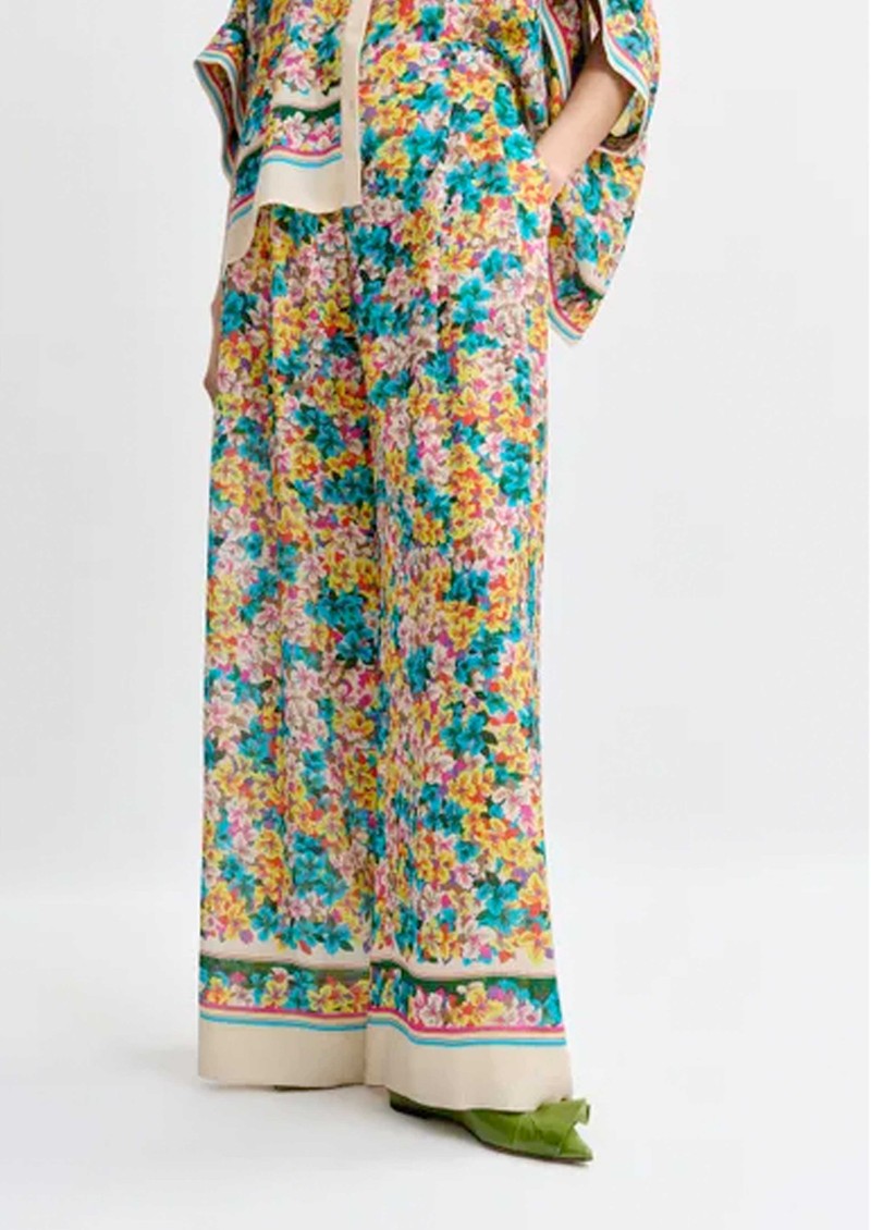 Bring vibrant style to your wardrobe with the Essentiel Antwerp Joek Wide-Leg Trousers in Lemon Squeeze - silk-blend trousers in a yellow and multicolour floral print, featuring a relaxed, floaty silhouette and a central button closure at the waist.