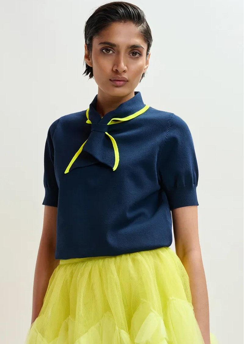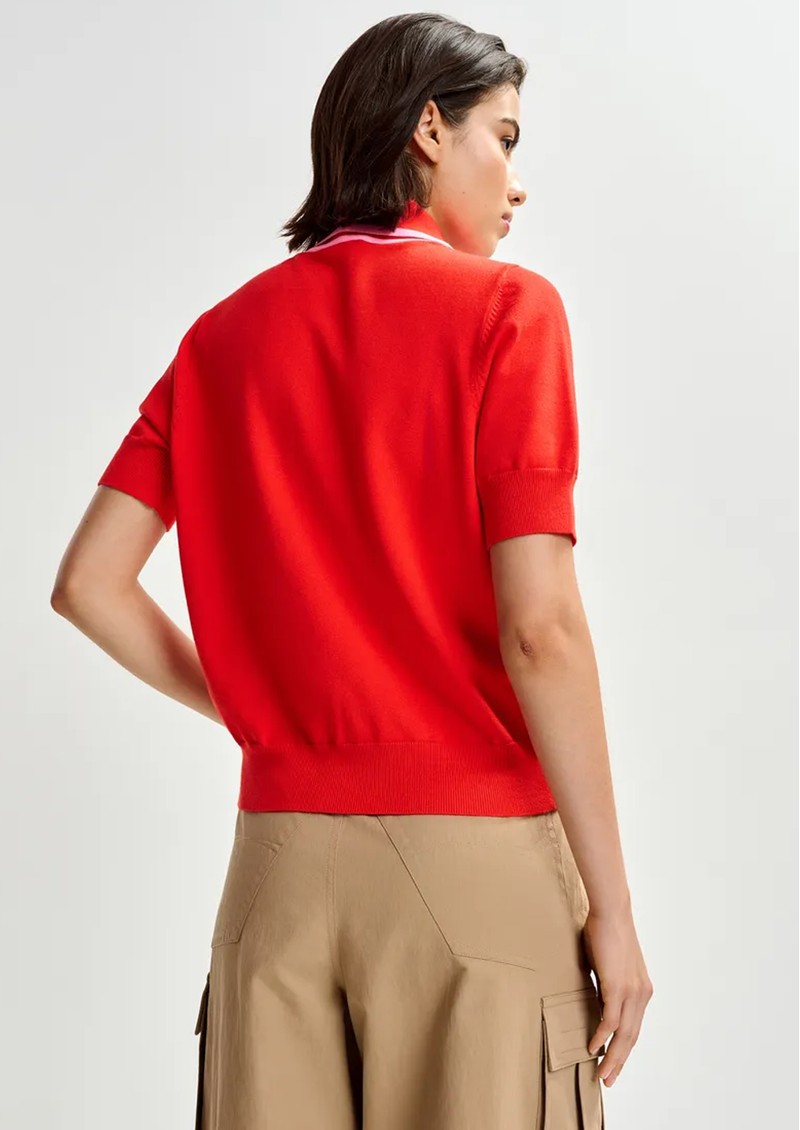 The Jonda knit polo from Essentiel Antwerp brings a twist to their classic polo style as it features a contrasting scarf-like detail collar. Crafted with recycled polyester the Essentiel Antwerp Jonda knit is designed for a relaxed fit, the perfect top for any day or night occasion: