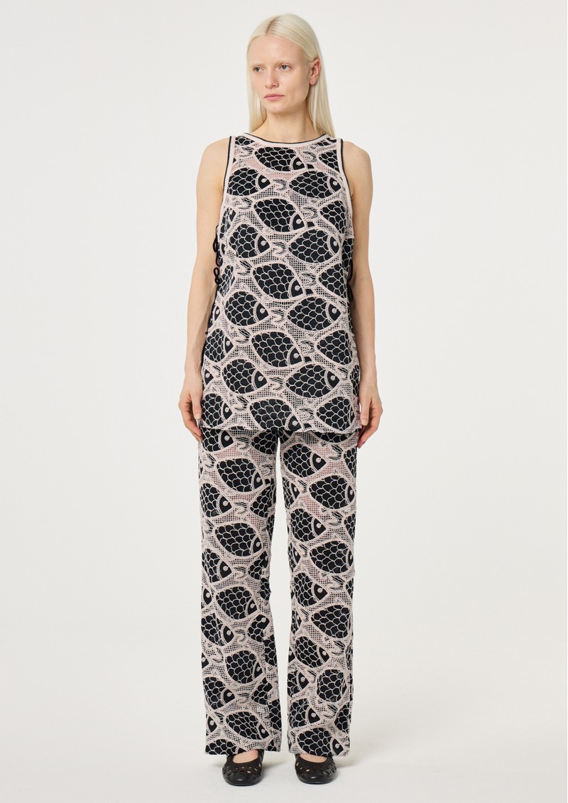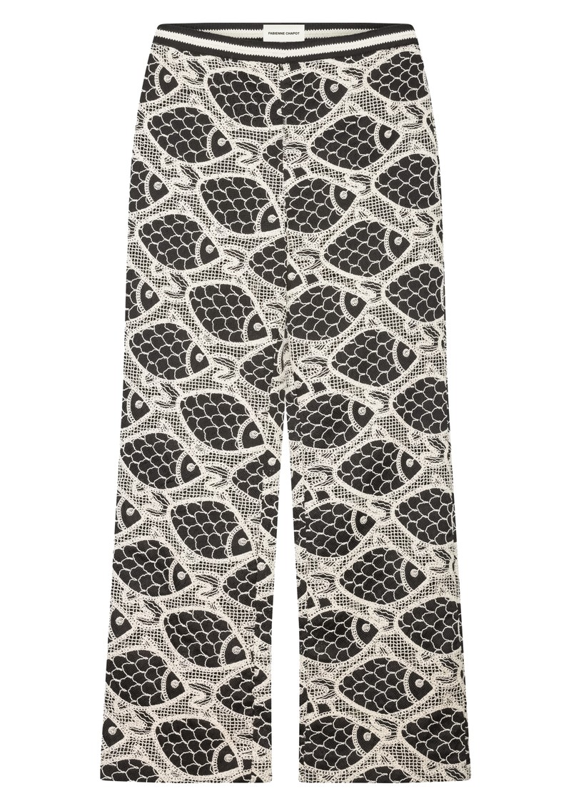 Introducing the Mora Trousers from Fabienne Chapot which is designed in a black mesh fabrication, beautifully embroidered with a white fish print. . Other features include:
