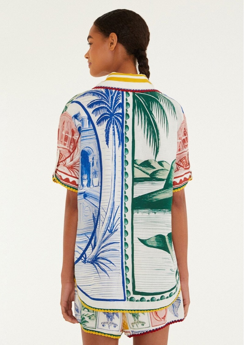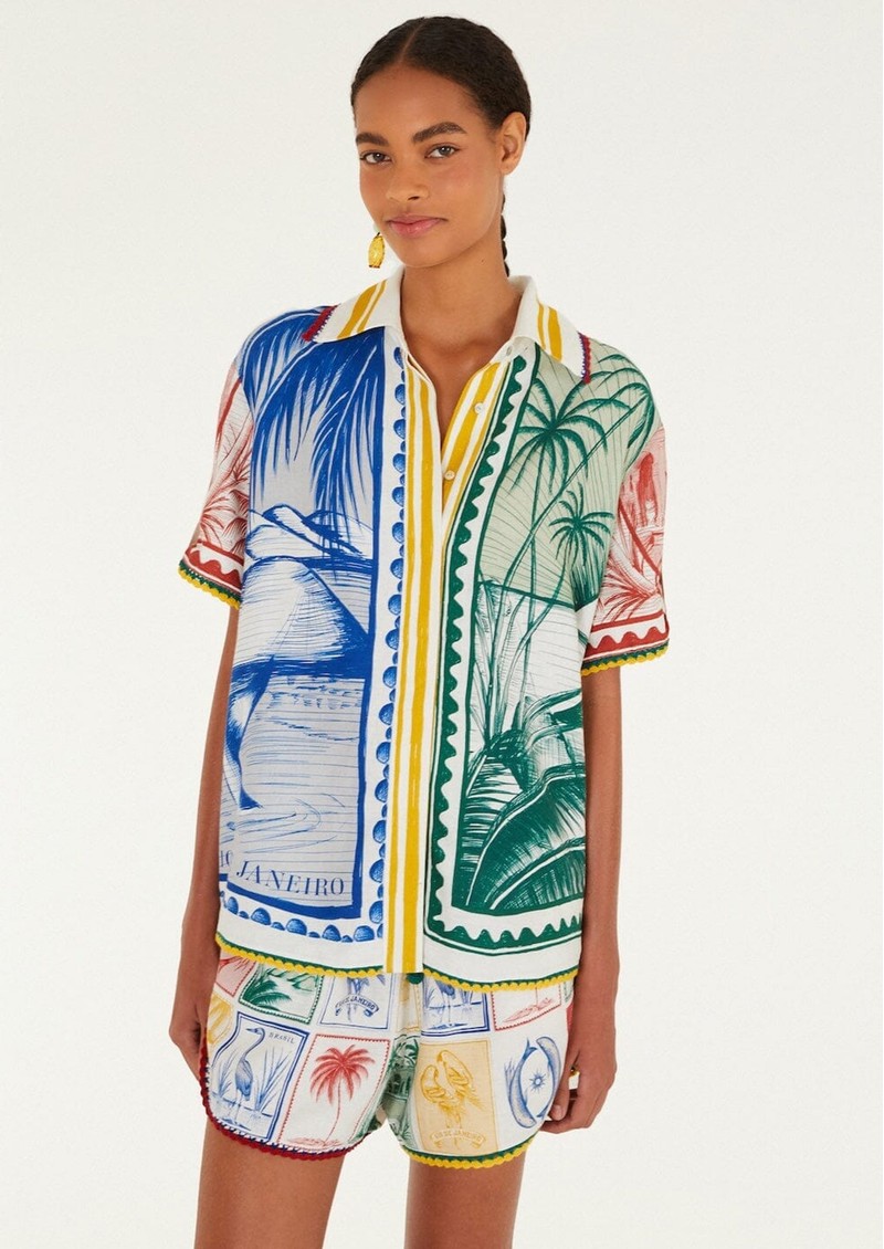 Embrace the spirit of Rio De Janerio with this stunning Farm Rio Brasil Vintage Shirt in Off White. Featuring a vibrant, tropical inspired print, this relaxed silhouette is playful and blends style and comfort. Made from a breathable fabrication, this shirt also features: