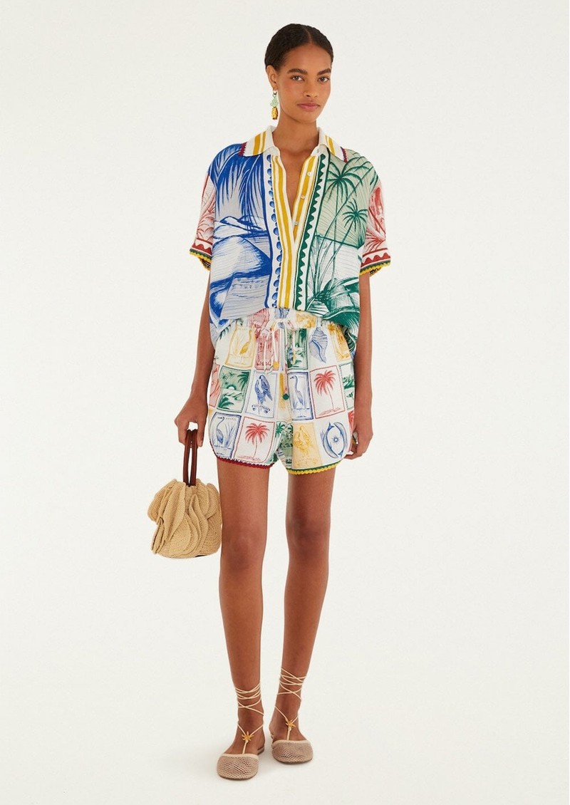 Get the full co ord set and team with the Farm Rio Vintage Brasil shorts for a luxe, playful look. Perfect for styling on their own or even layered over a Sorbet Island swimsuit for poolside glam. Complete the look with a stylish straw Muun bag.