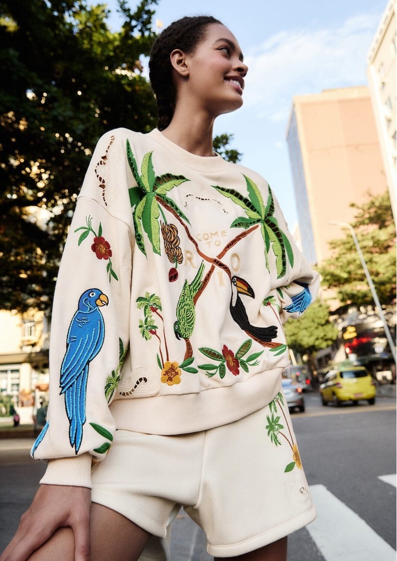 Embrace the spirit of Rio with this gorgeous Coconut Trees Come to Rio Sweater in Off White from Farm Rio. This super soft white sweater is embroidered with coconut trees, parrots and tropical flowers which really brings it to life. Other features include: