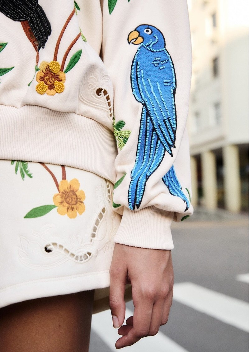 - Tropical inspired embellishment and embroidery throughout