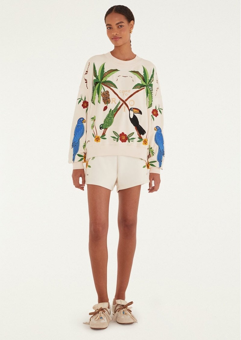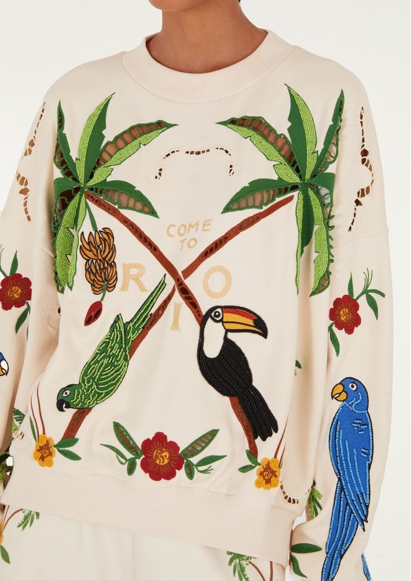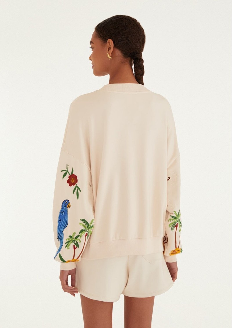 FARM RIO Coconut Trees Come to Rio Embroidered Sweater - Off White