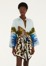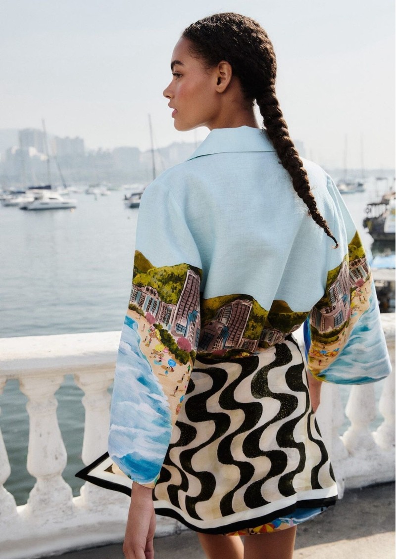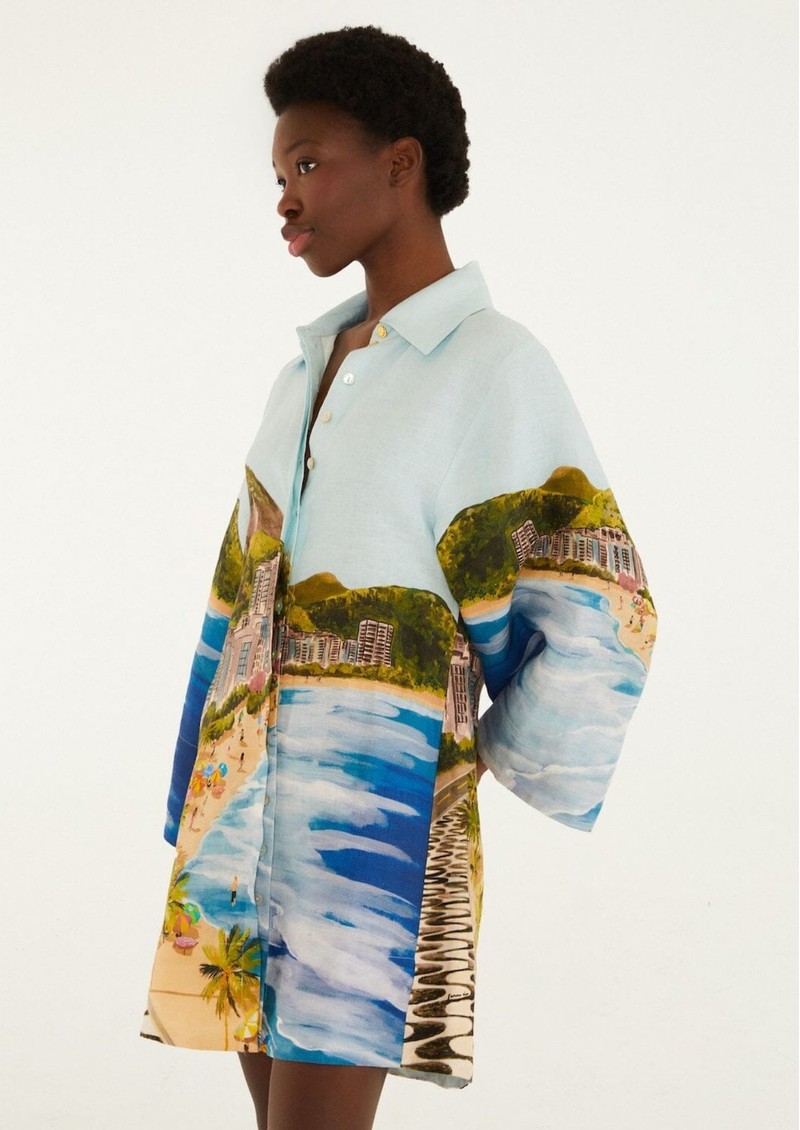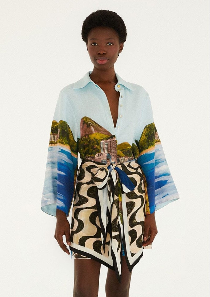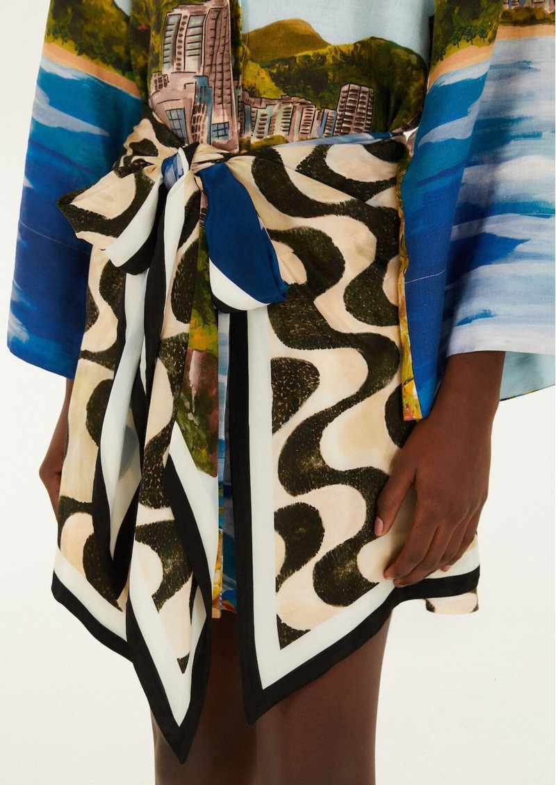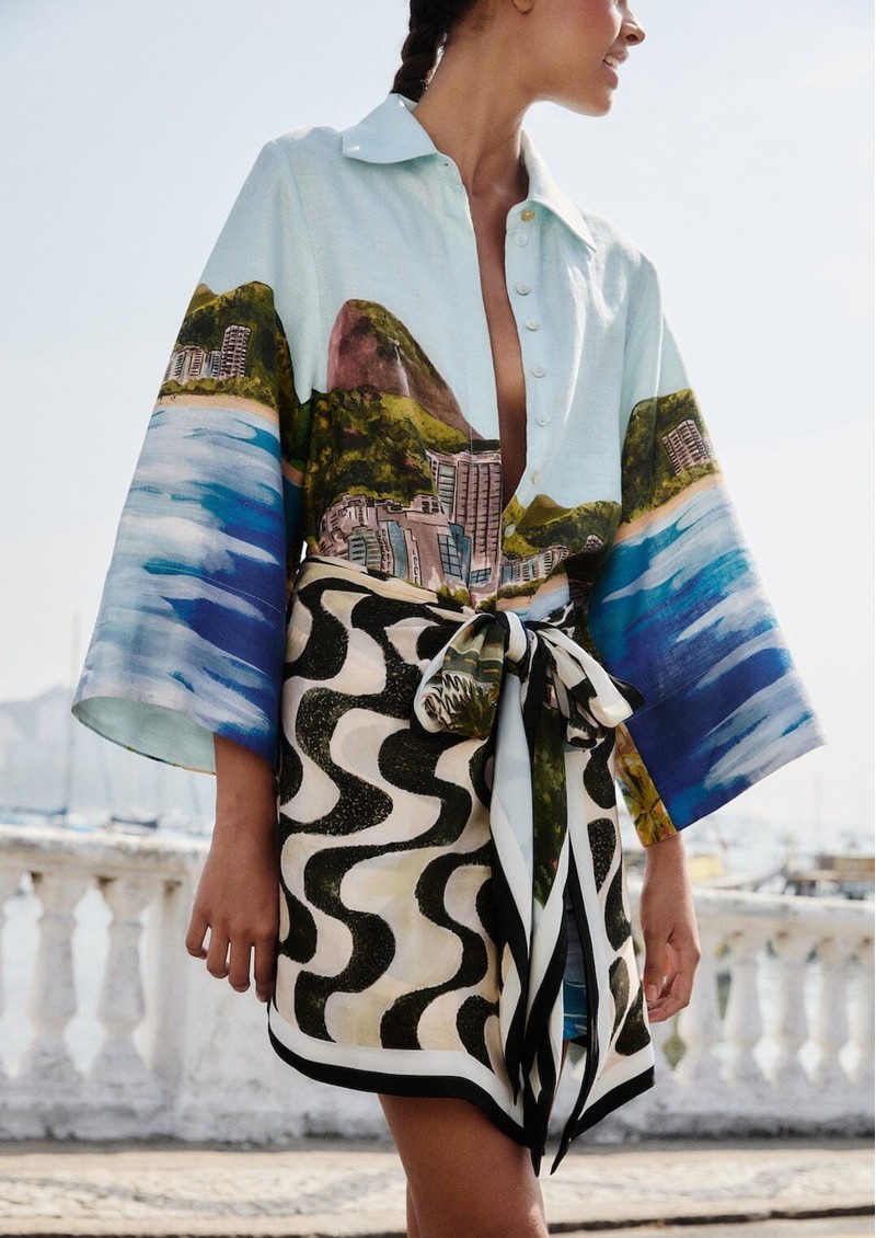 Say hello to the Farm Rio Copacabana Kimono. Channel the vibrant spirit of Rio in the Multicolor Copacabana Linen Long Sleeve Kimono. Crafted from breathable, sustainable Euroflax linen, it features a relaxed fit, playful collar, and vivid multicolor print. A matching scarf is included for added versatility: Style it together for a bold look or on its own. Key features of this Farm Rio dress include: