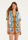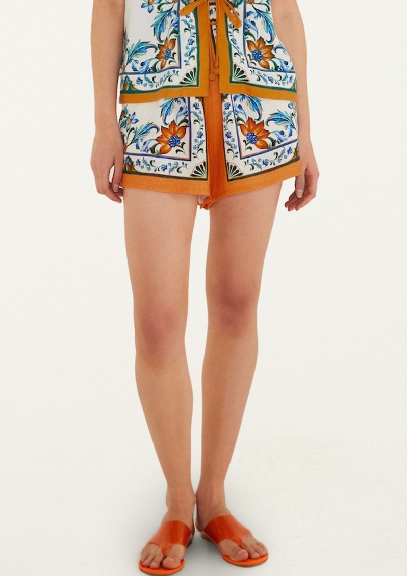 Introducing the Farm Rio Flora Tile Shorts. These airy shorts are designed with a relaxed fit that complements every figure. Showcasing a tile print design with pops of orange, white and blue, they capture the spirit of sun-soaked seaside escapes. Key features include: