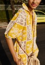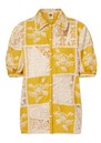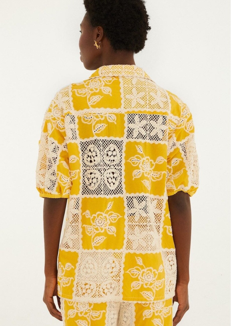 FARM RIO Lace Short Sleeve Shirt - Off White & Yellow