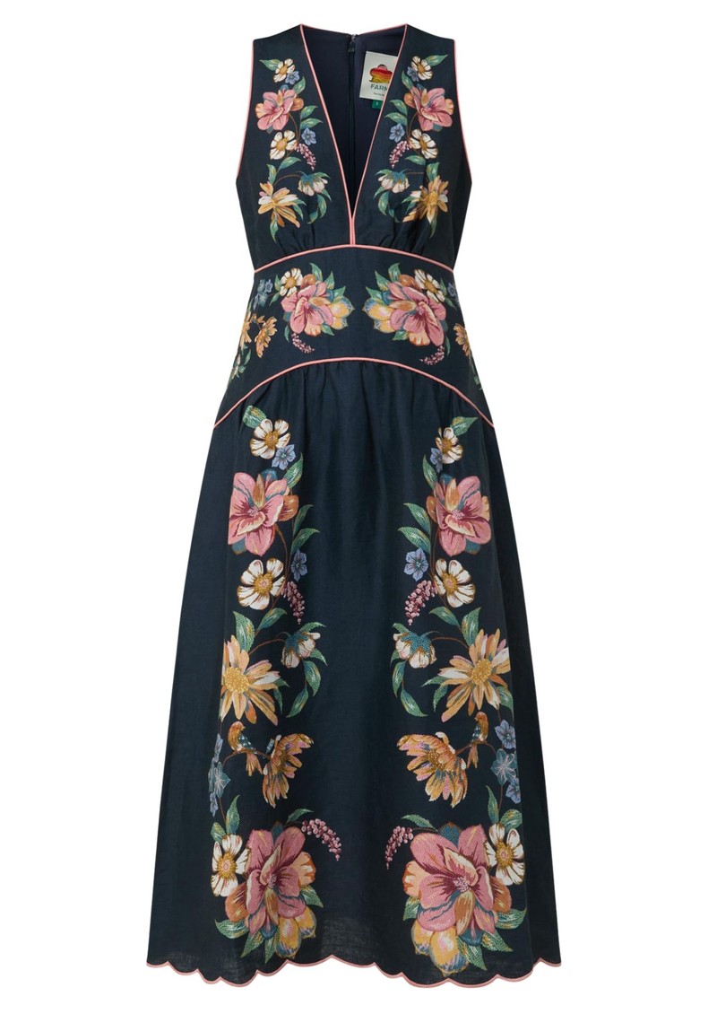 FARM RIO Maira Floral Sleeveless Linen Dress - Dark Blue