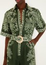 The wait is over, Farm Rio has landed at The Dressing Room and we are lusting after this Miranda Belted Romper. Designed in a lightweight linen and beautifully decorated in a dark green paisley inspired print. With a button down front, collar and statement belt, this style also features: