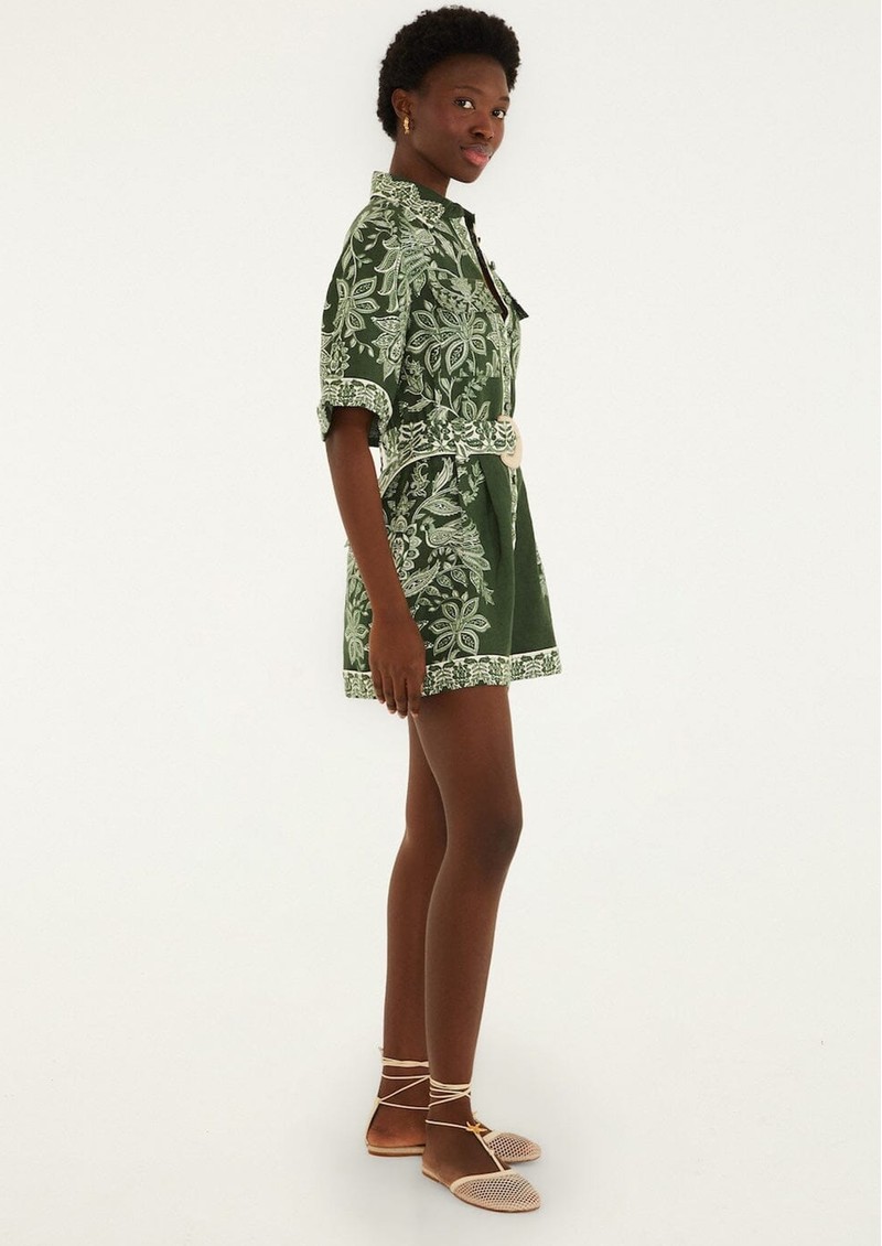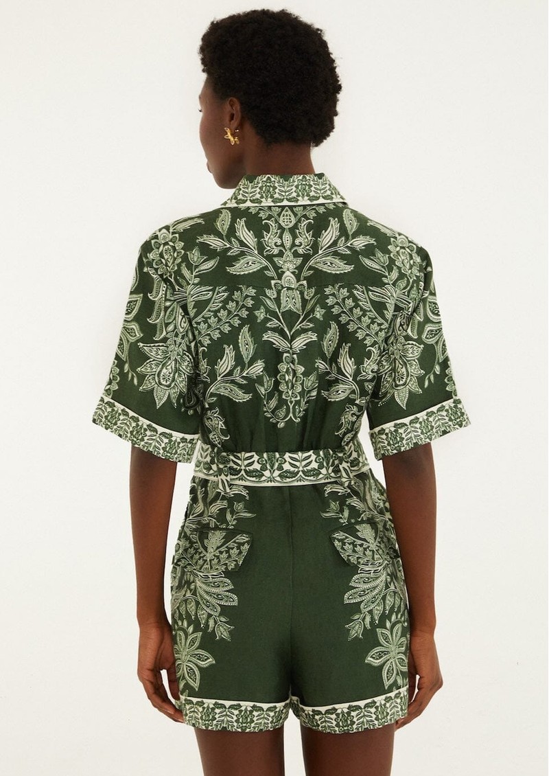 FARM RIO Miranda Linen Belted Romper - Dark Green