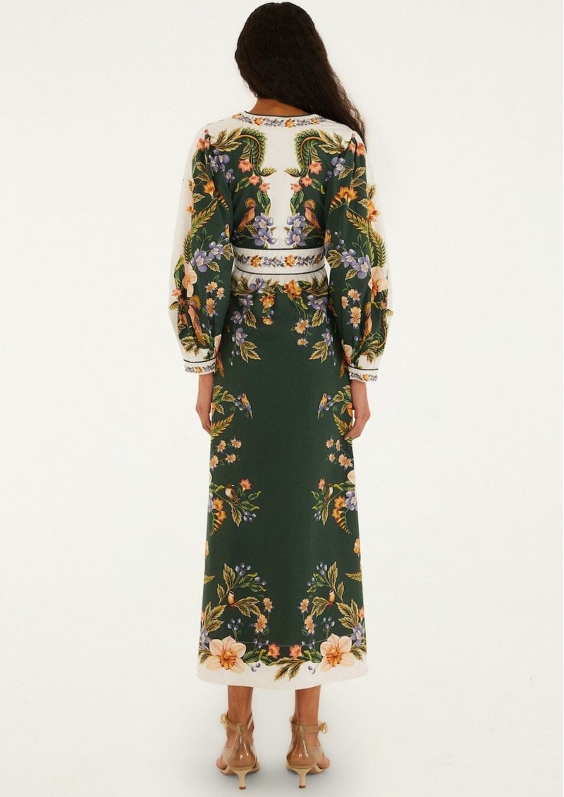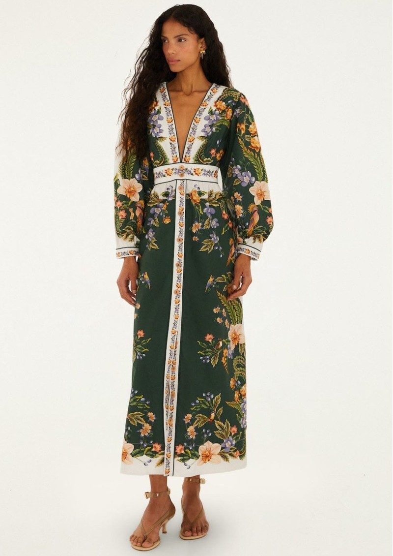 Say hello to the gorgeous Nature Green Maxi Dress from Brazilan based brand Farm Rio. This statement long sleeve dress is perfect for all of your upcoming summer events. We love the long puffy sleeves and the placement print florals. Key features of this Farm Rio dress are: