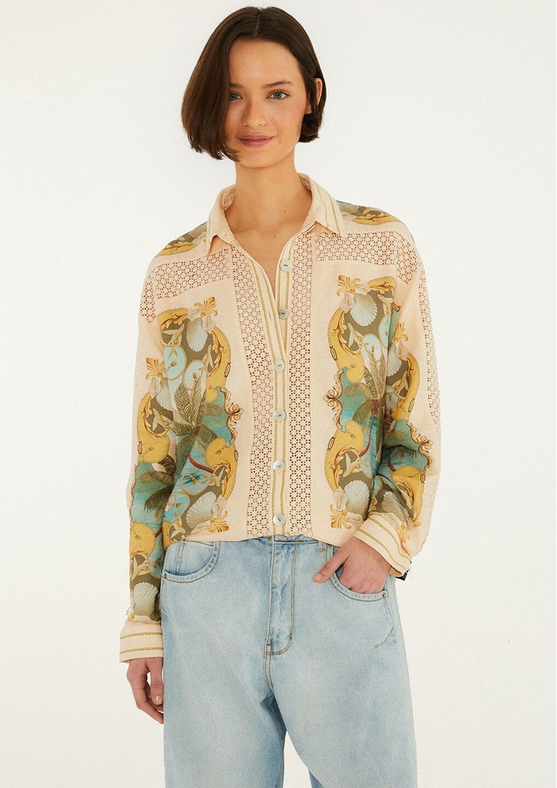 FARM RIO Sand Royal Sea Crochet Shirt - Royal Sea