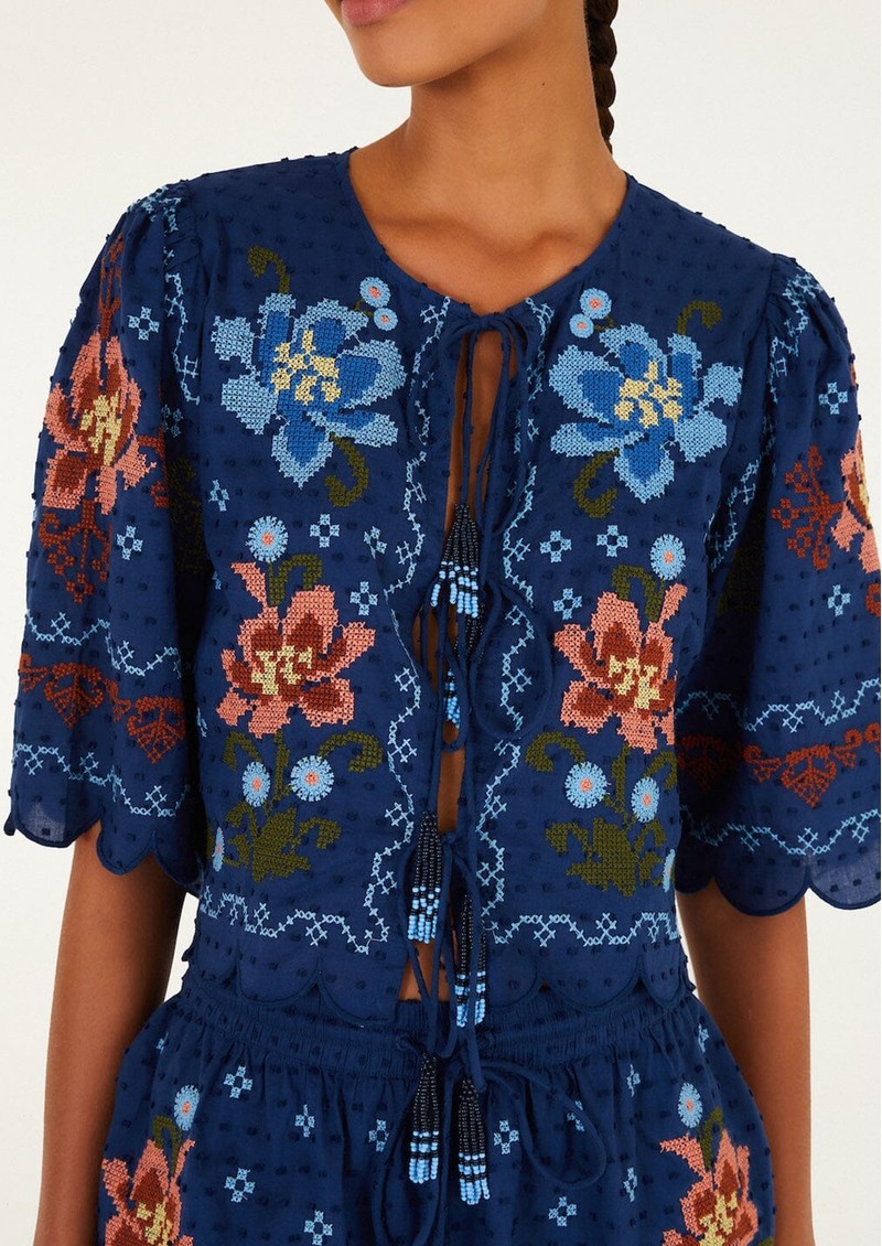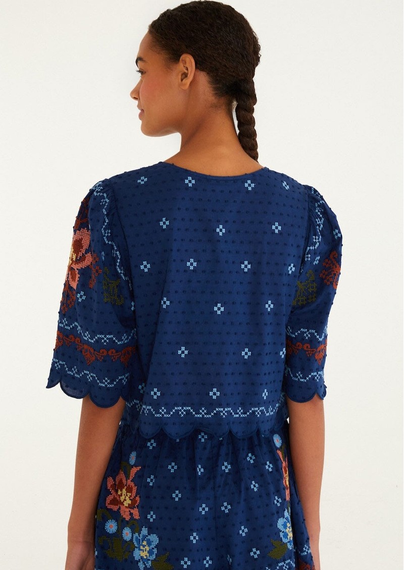 FARM RIO Stitched Garden Blouse - Dark Blue