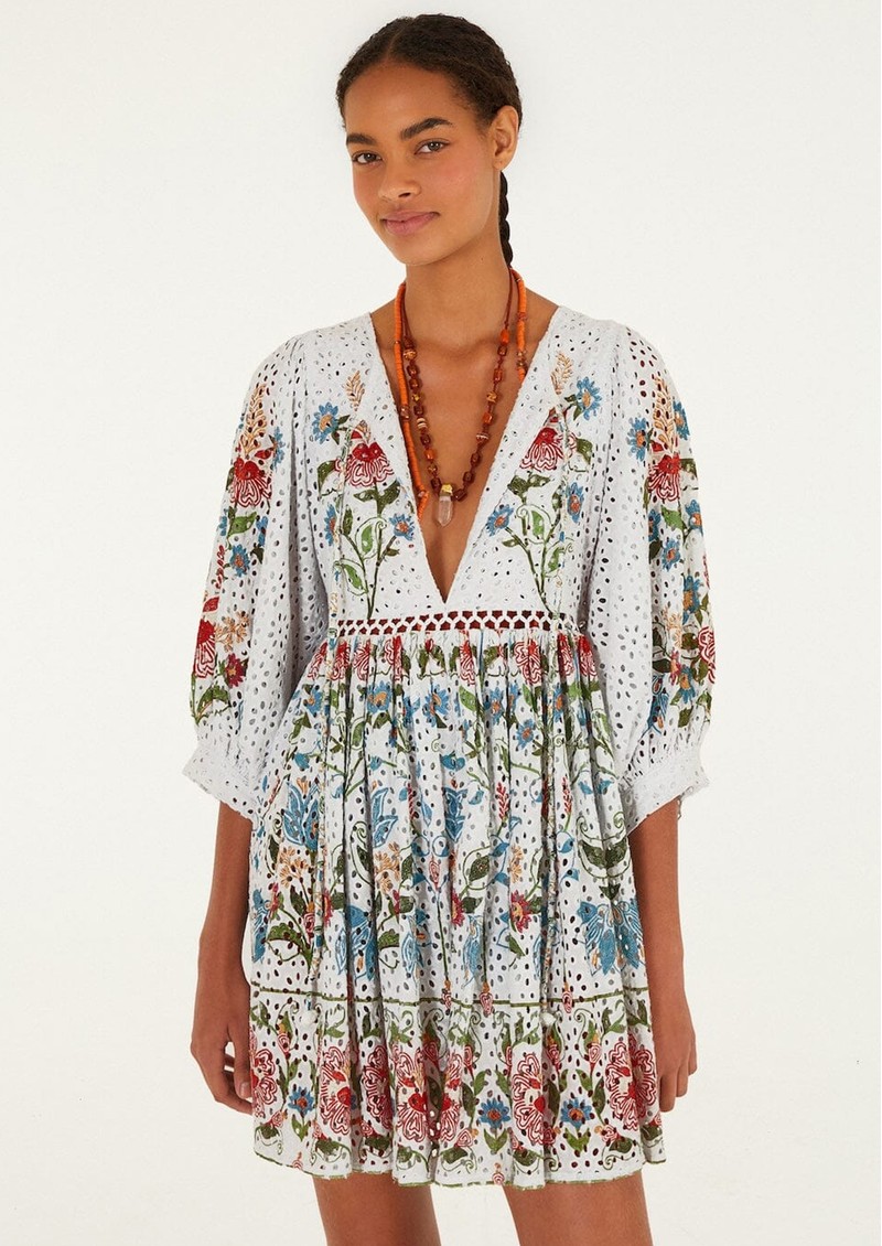FARM RIO Stitched Garden Mini Dress - Off White