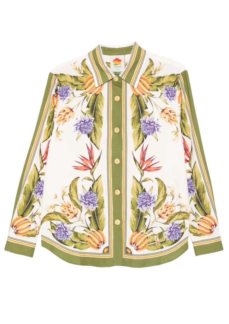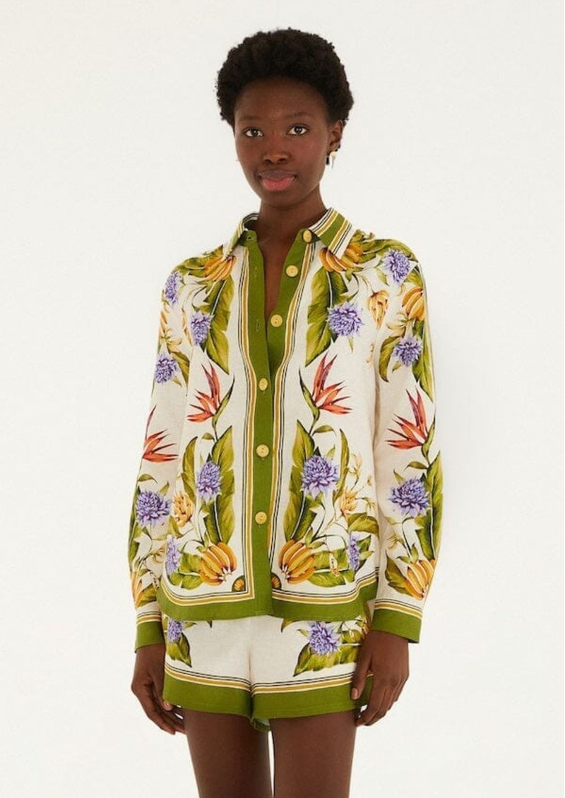This Farm Rio shirt is made from 55% linen and 45% viscose.