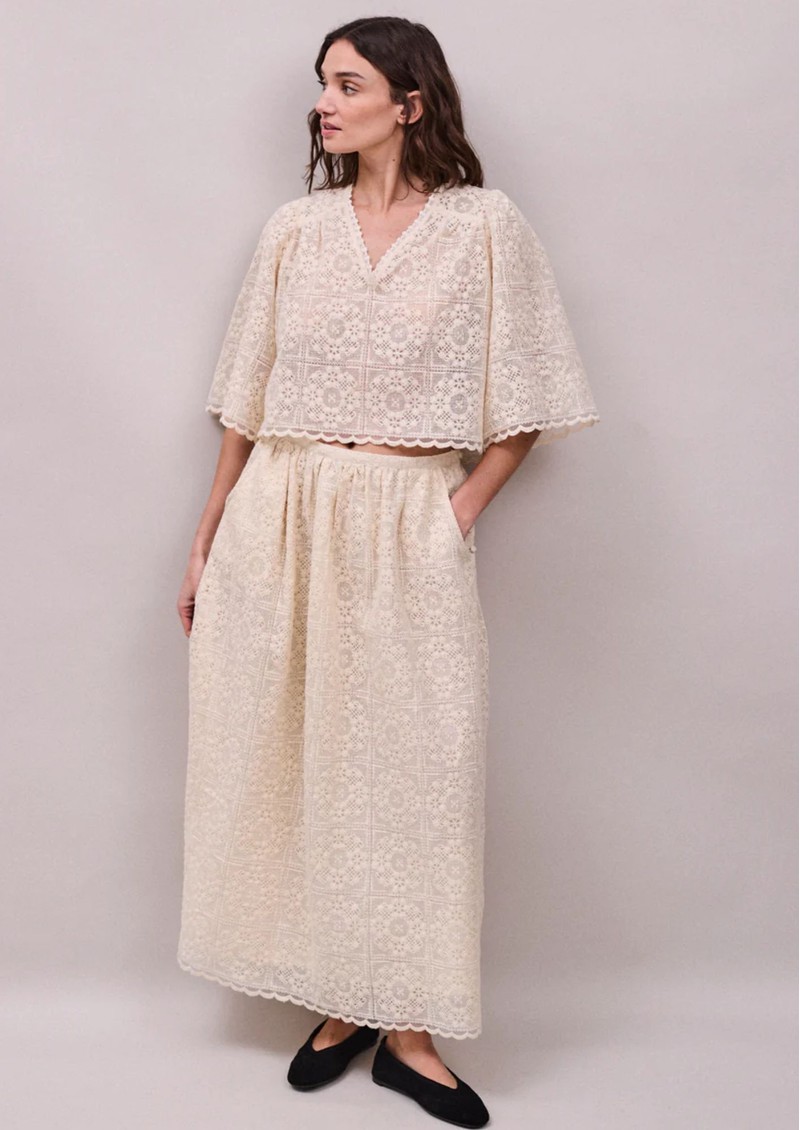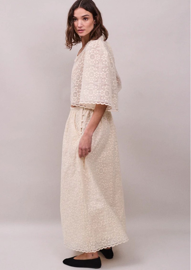 FAUNE Jean Embroidered Lace Midi Skirt - Oyster