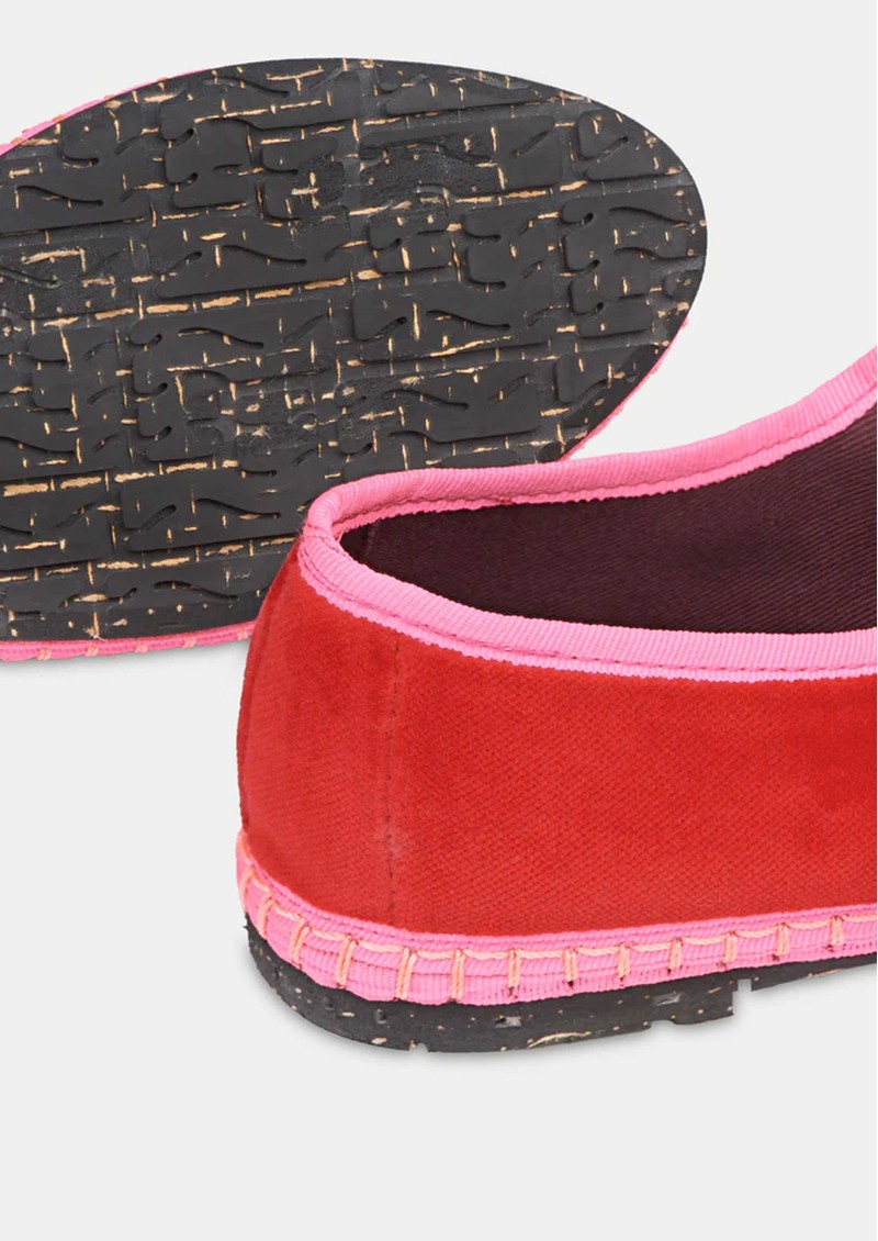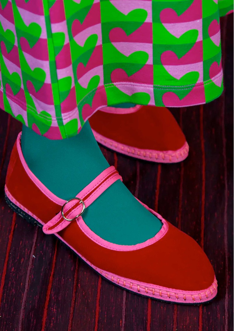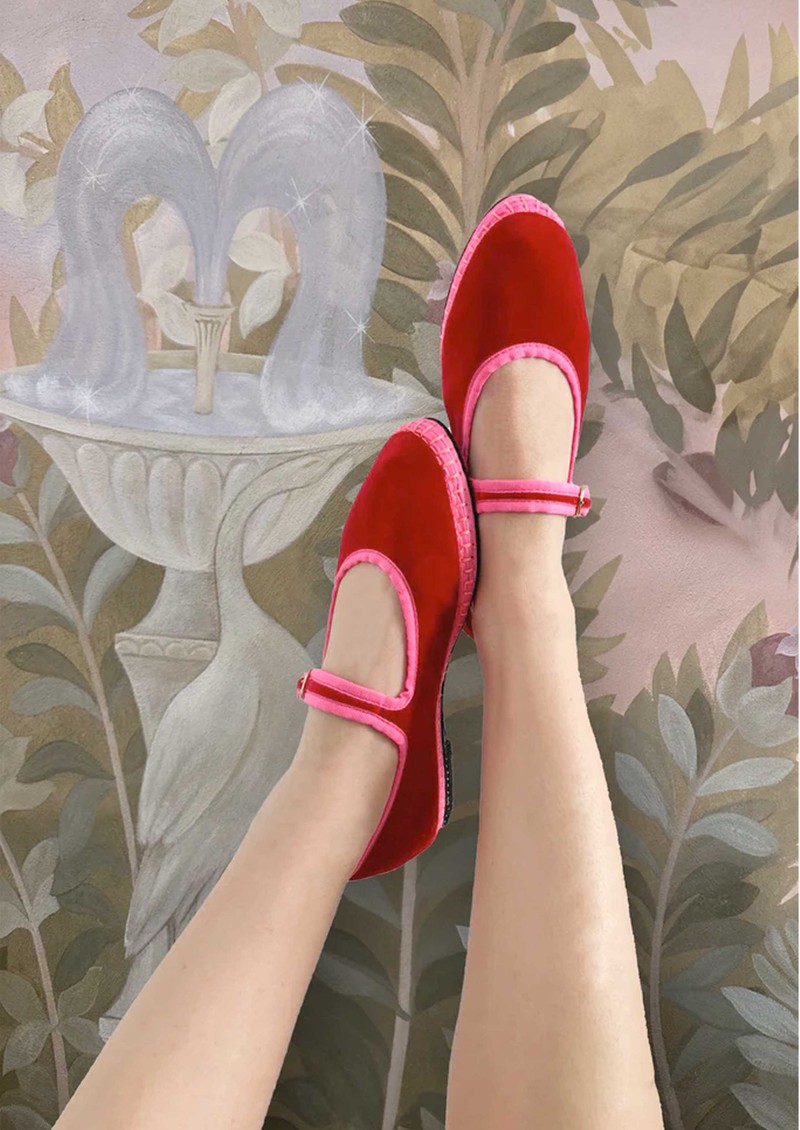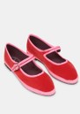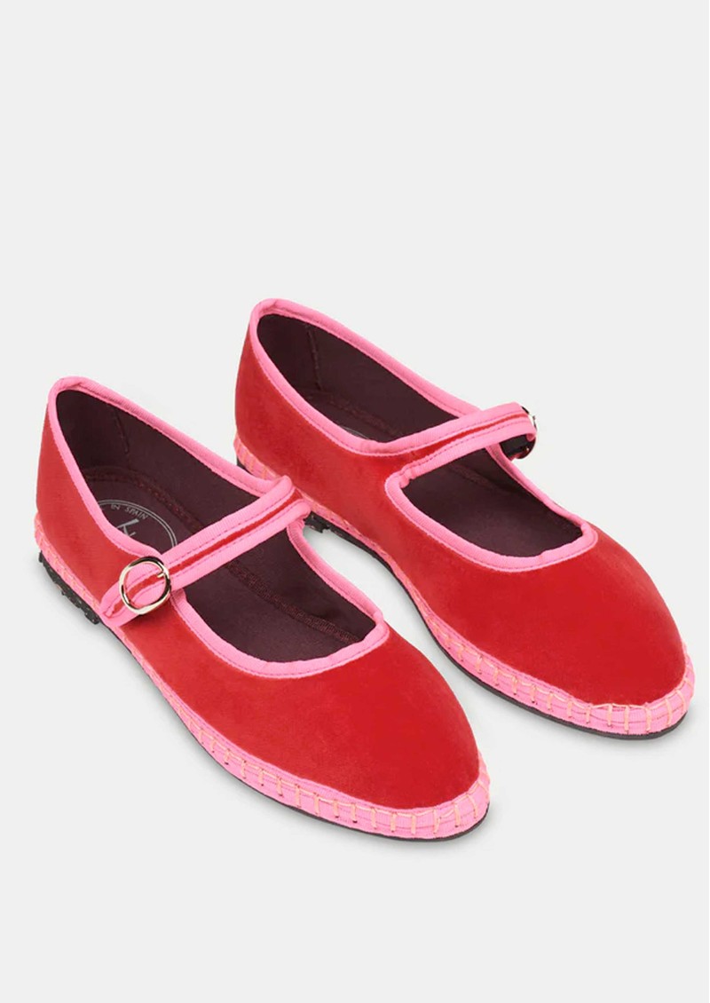 - Velvet Mary Jane in red with pink piping