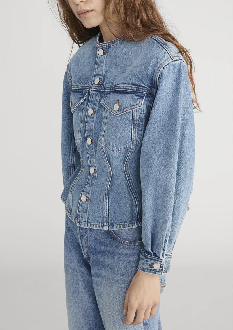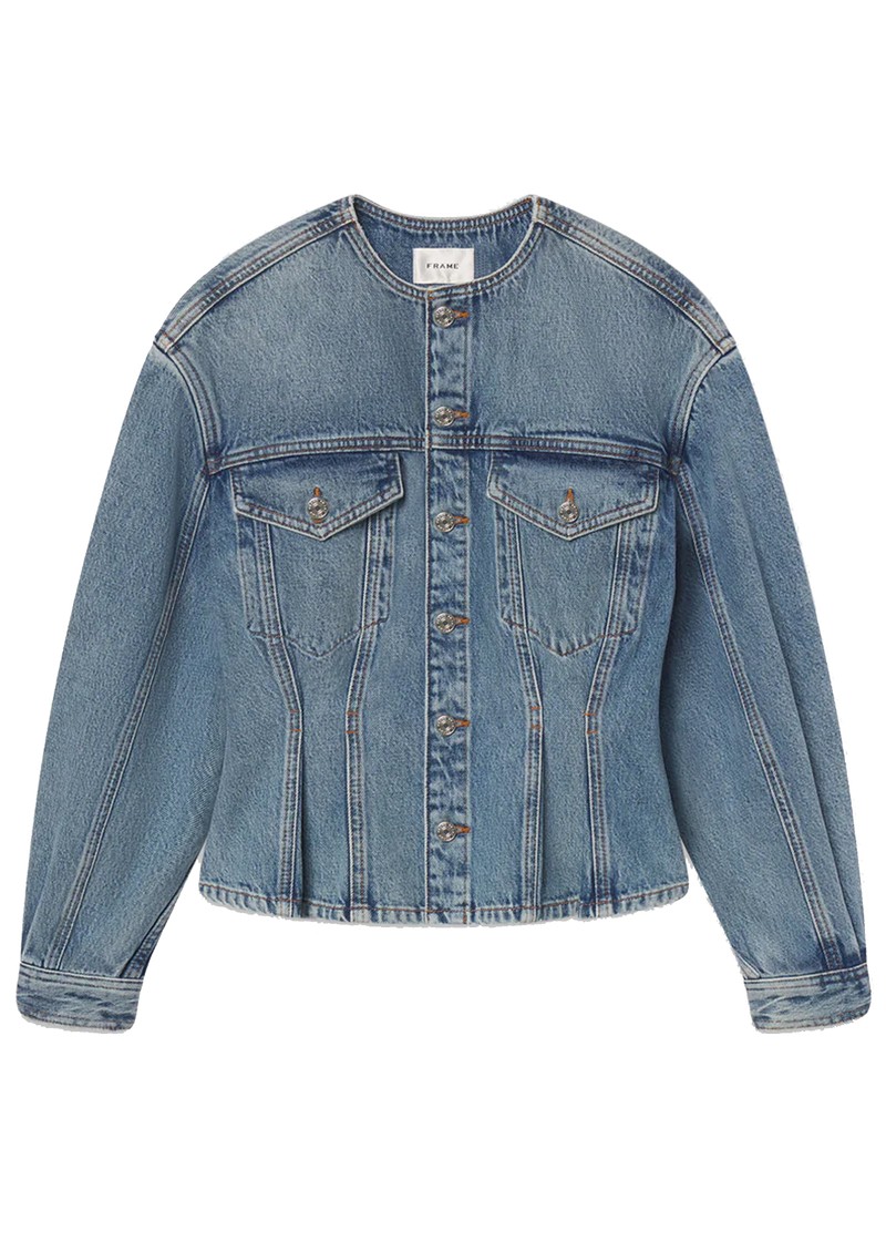 Frame Denim Nipped Collarless Denim Jacket - Umbria