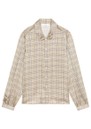 The Frame Plaid Staple Blouse in walnut is a timeless wardrobe essential, featuring a classic shirt shape with a pointed collar and central button closure for effortless style. Its full-length sleeves and intricate all-over plaid print add refined detail to a versatile, everyday piece.