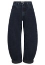 The Frame Denim Bubble in black is a bold, playful update on the trending barrel silhouette, making it an essential statement piece for your wardrobe. Featuring a flattering high rise and curved outseam for a unique bubble effect, these jeans are designed to be worn with the 2.5" twice-rolled cuff at the ankle—or unrolled for a longer, dramatic look.