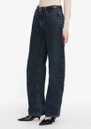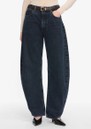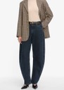 - High rise, barrel leg jean