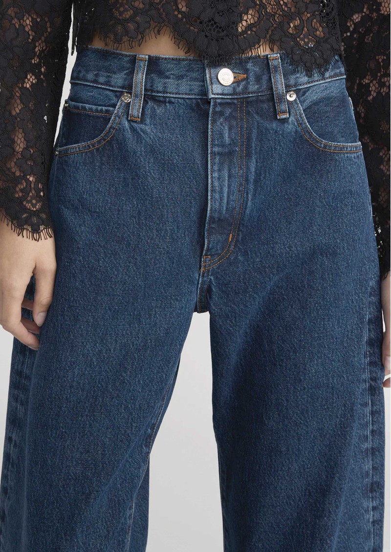 Elevate your denim game with the Frame Denim The Bubble in Lavish (mid blue), a high-rise wide-leg jean with a playful bubble silhouette. Crafted from 100% regenerative cotton, it moulds to your figure over time for a flattering, personalised fit.