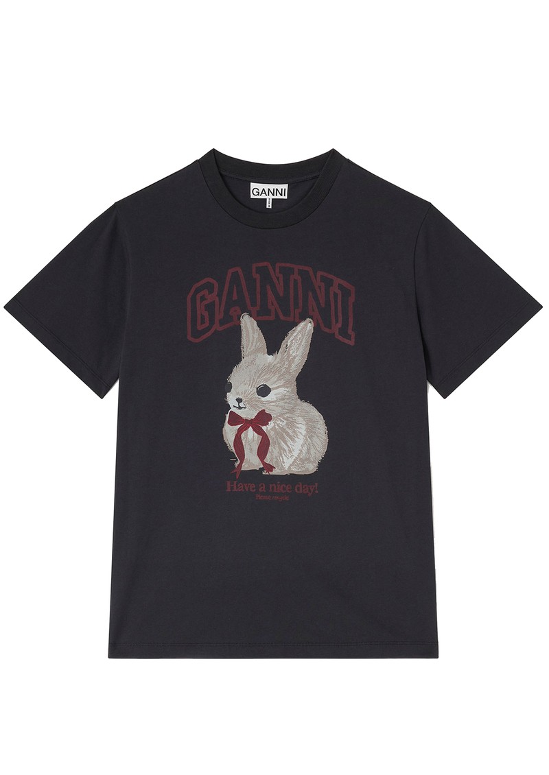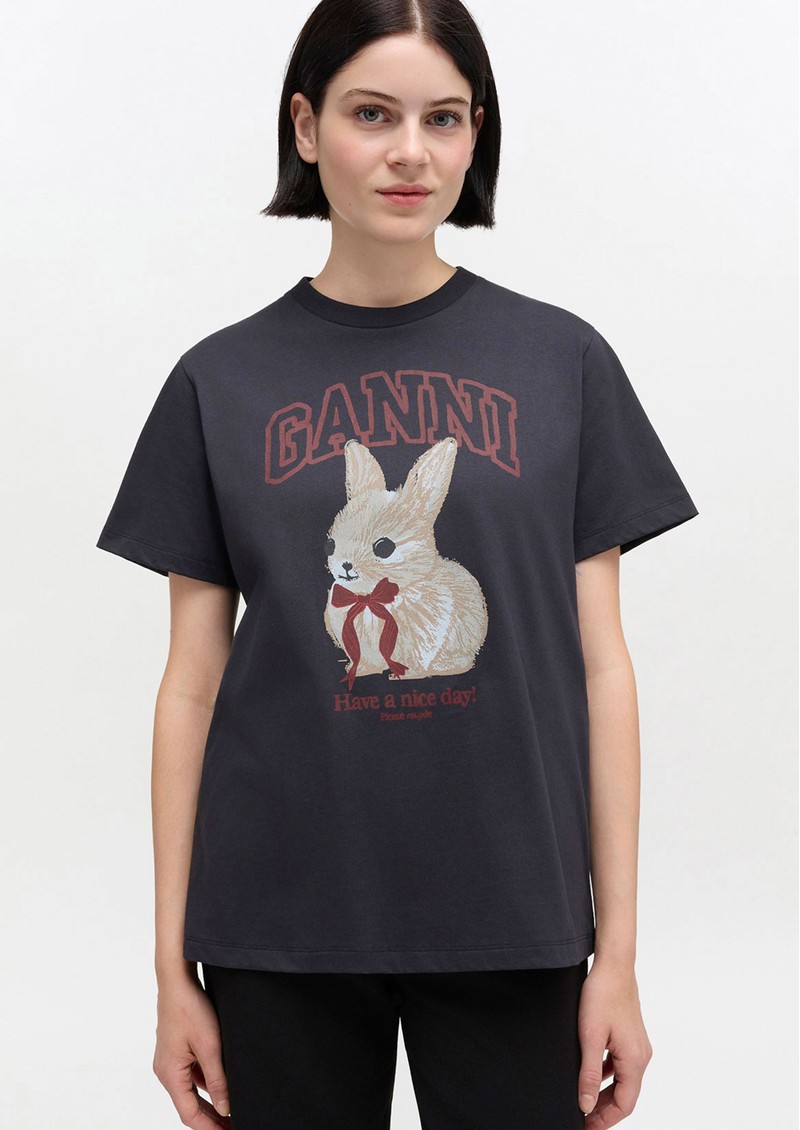 GANNI Bunny Bow Organic Cotton T-Shirt - Phantom
