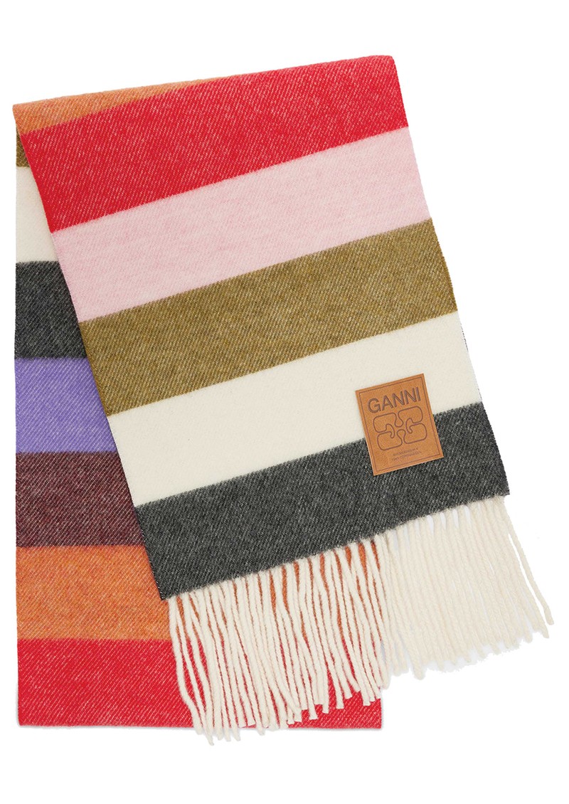 Style your Ganni scarf with a Ganni shirt, Agolde jeans, and Ganni flats for a chic, coordinated outfit with effortless flair.