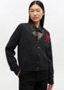 The Ganni Graphic Wool Cardigan in phantom is a cosy, versatile layer featuring a flattering V shaped neckline, full-length sleeves, and a button-front closure. It’s finished with an adorable red bow for a cute twist. Key features of this Ganni cardigan are: