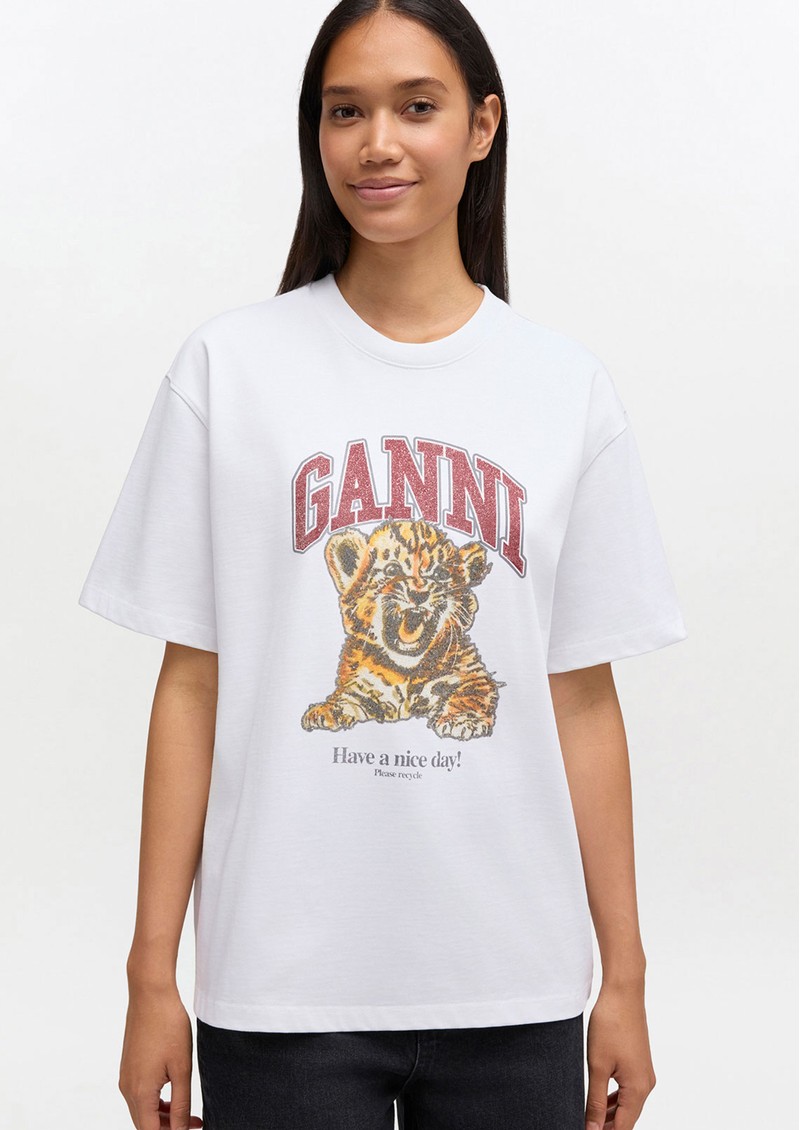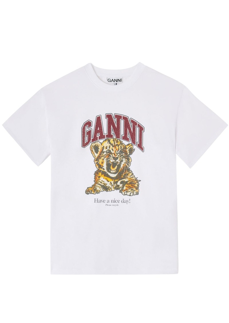 GANNI Heavy Jersey Tiger Glitter T-Shirt - Bright White