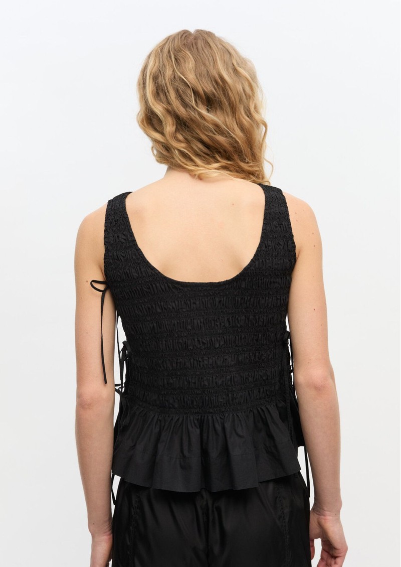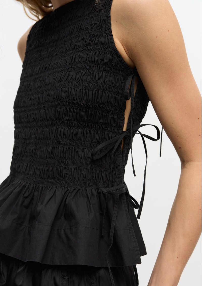 GANNI Poplin Smock Tie String Top - Black
