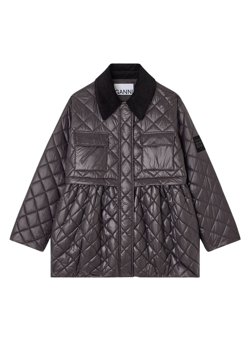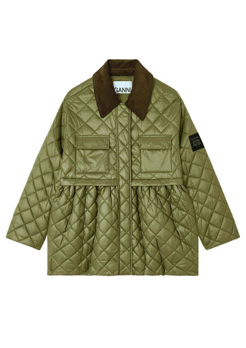 GANNI Shiny Quilt Midi Jacket - Kalamata