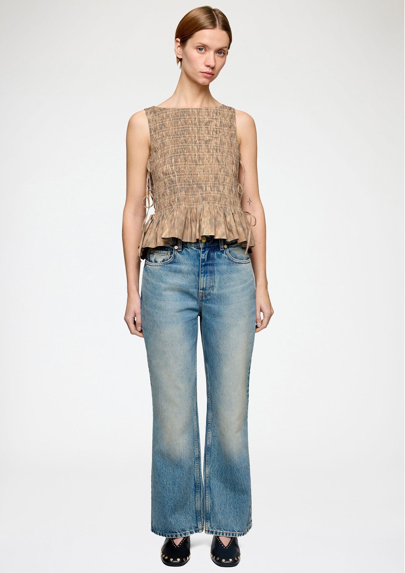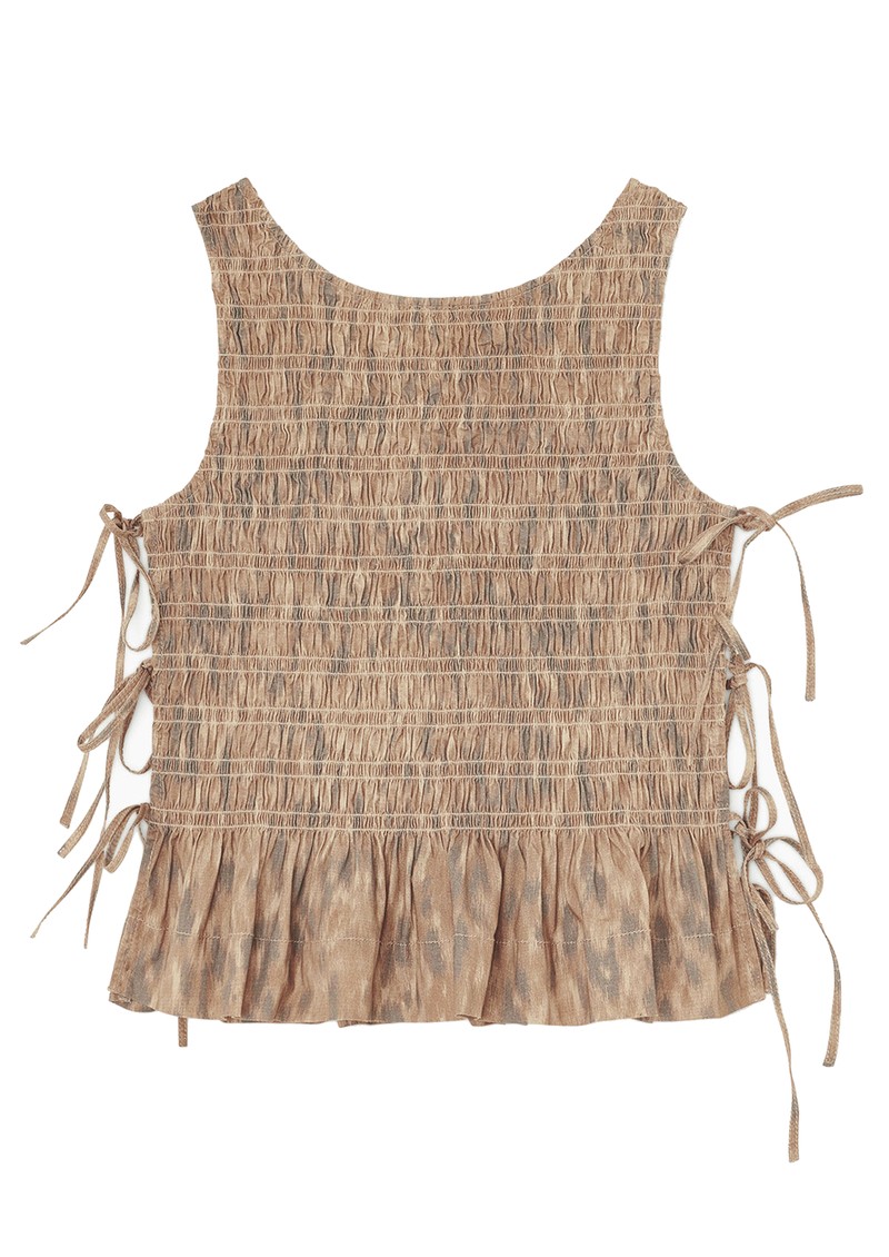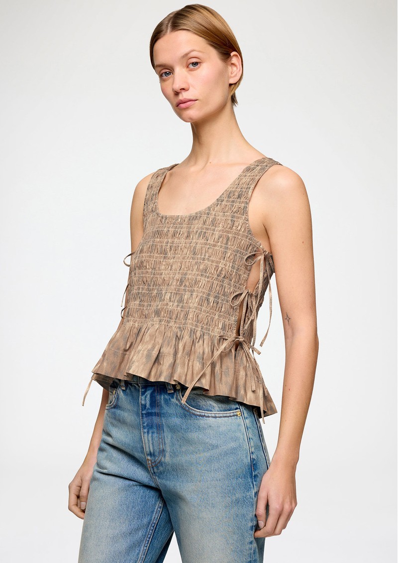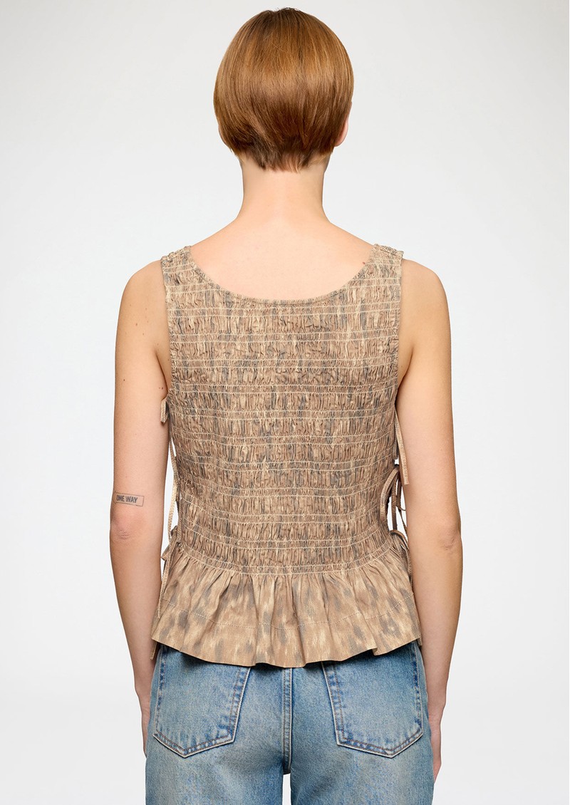GANNI Smocked Tie String Top - Burro