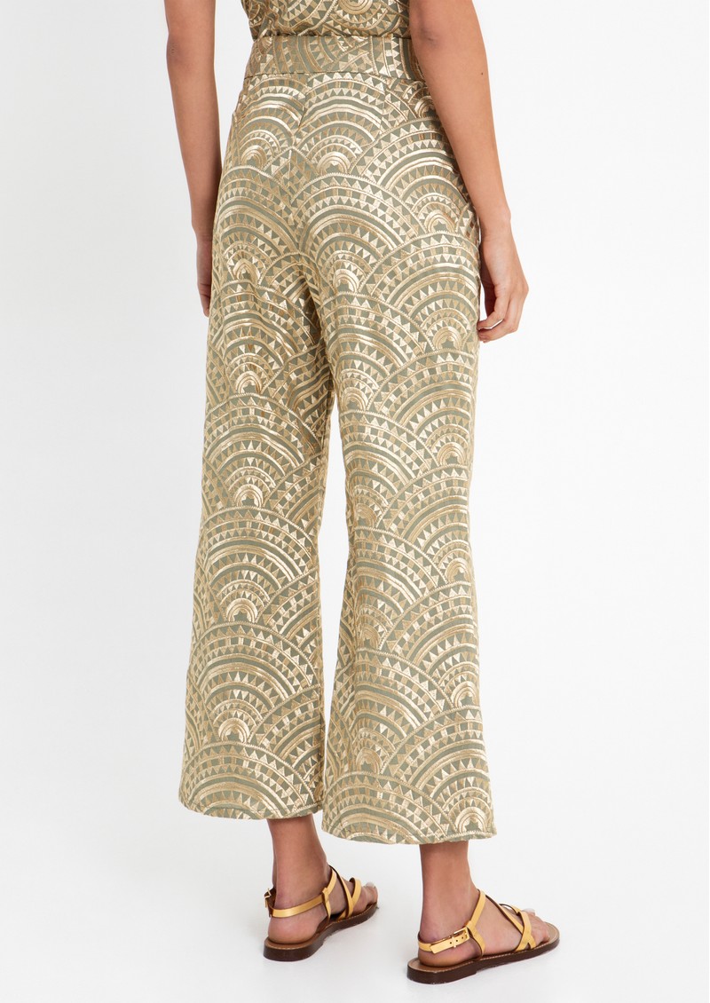 GREEK ARCHAIC KORI Embroidered Cotton Cropped Trouser - Sage/Gold
