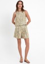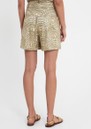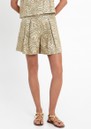 The Greek Archaic Kori Embroidered Cotton Shorts in sage/gold are crafted from 100% cotton (a soft, breathable natural fibre) for all-day comfort. Featuring a sage base with intricate fan embroidery in a regal gold hue, tailored pleats, and a mid-thigh length, these shorts offer a flattering, stylish fit.