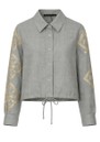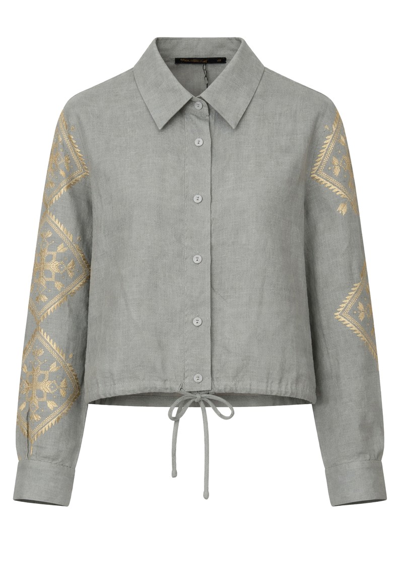 GREEK ARCHAIC KORI Embroidered Long Sleeve Linen Blouse - Stone & Gold