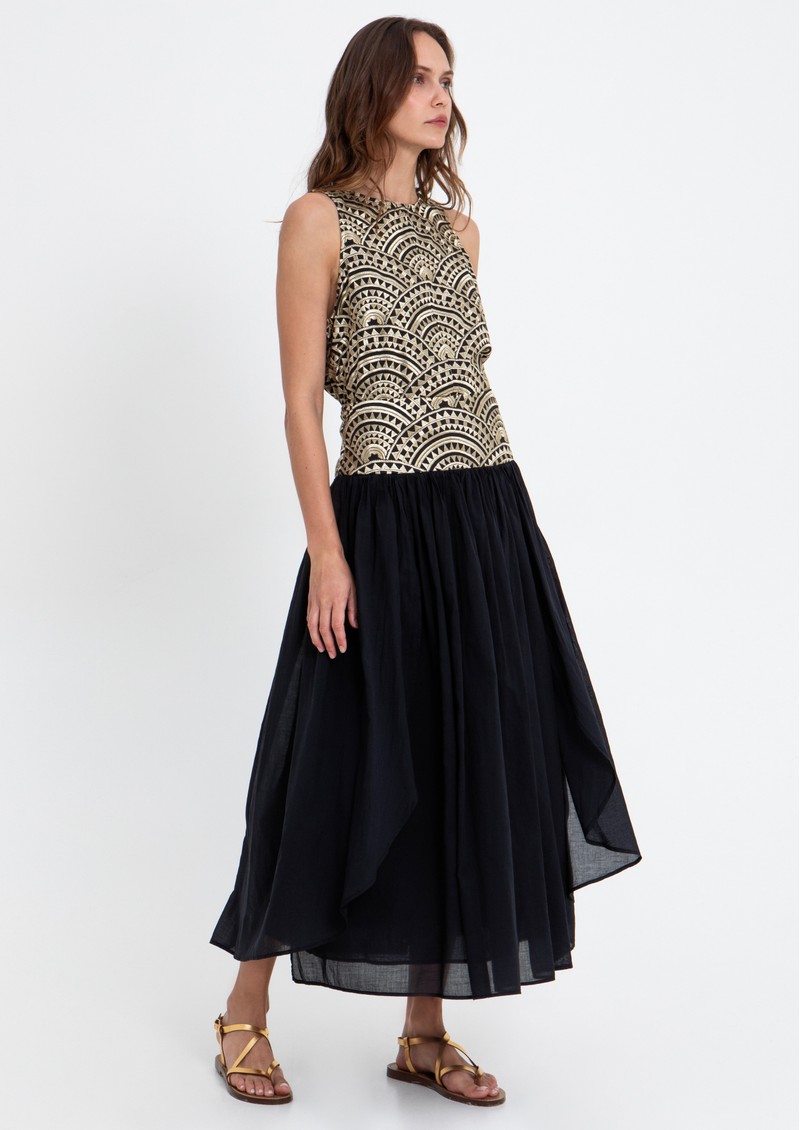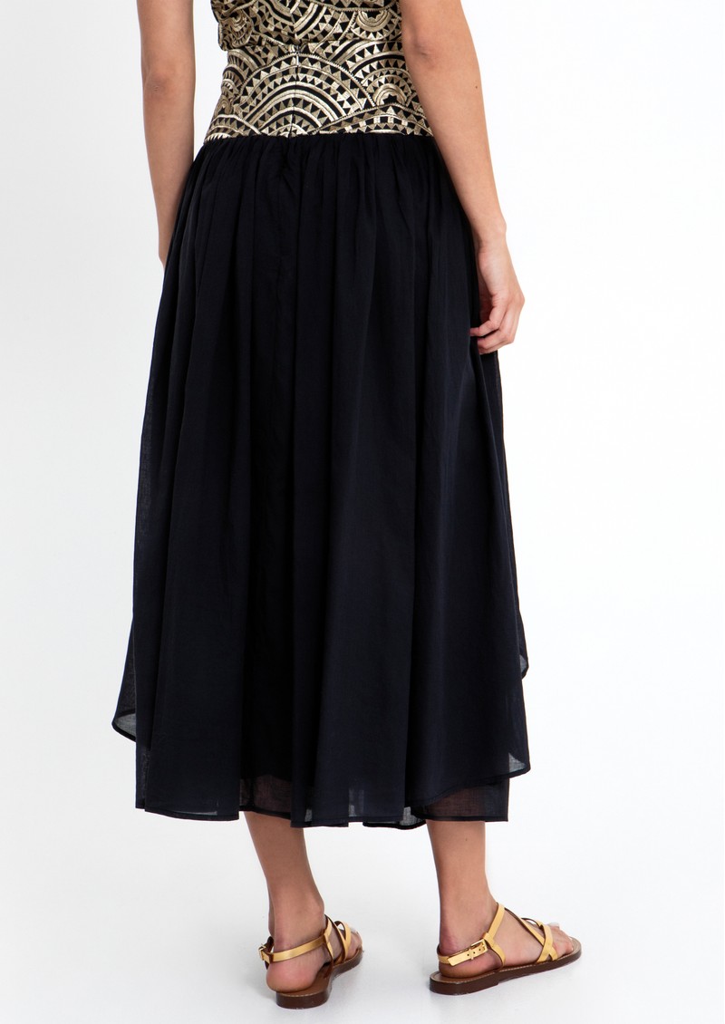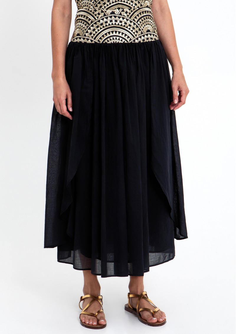 GREEK ARCHAIC KORI Embroidered Midaxi Cotton Skirt - Black/Gold