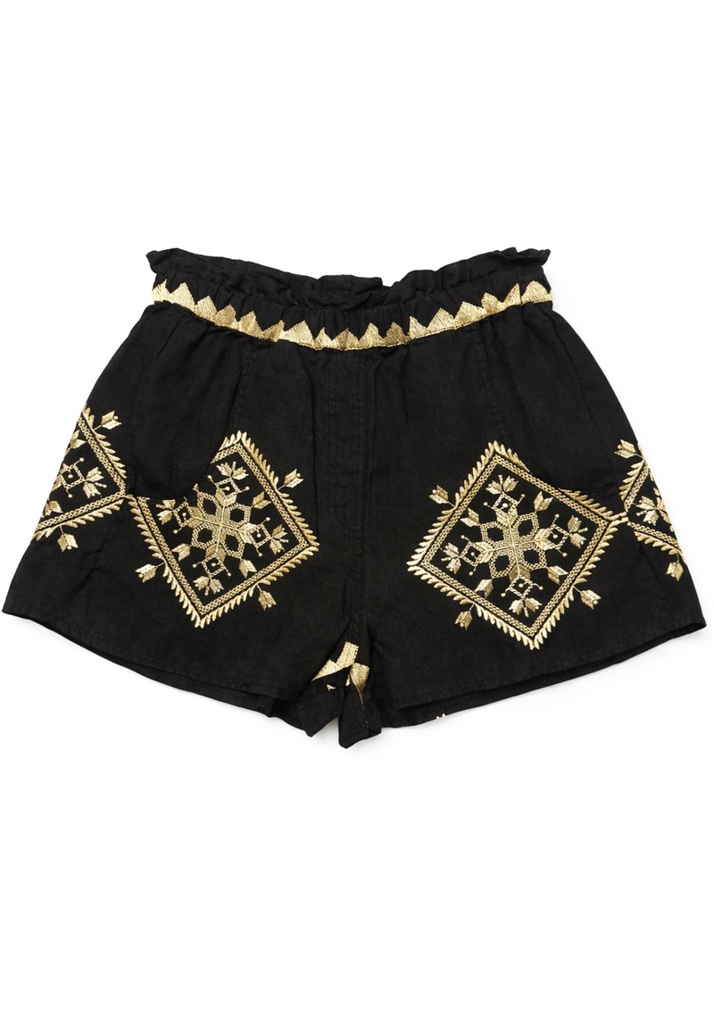 GREEK ARCHAIC KORI Frill Waist Embroidered Shorts - Black/Gold