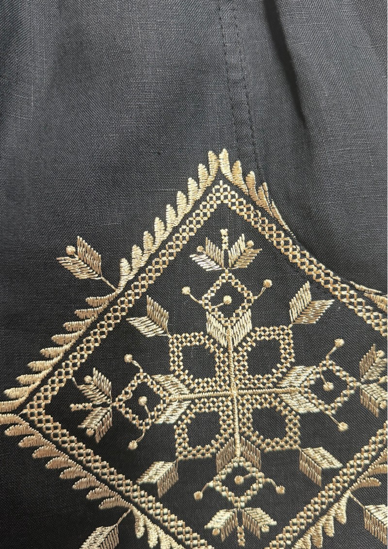 The Greek Archaic Kori Shorts are 100% Linen and 100% Polyester Embroidery