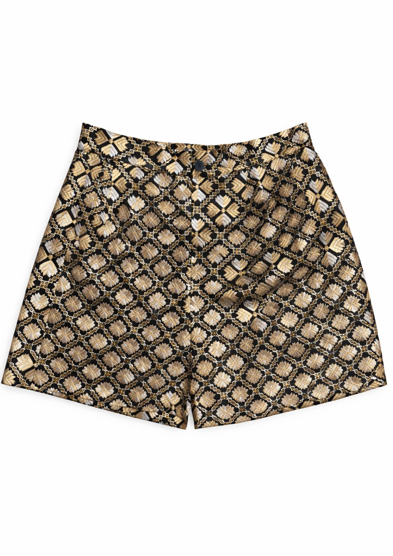 GREEK ARCHAIC KORI Geo Embroidered Shorts - White/Champagne